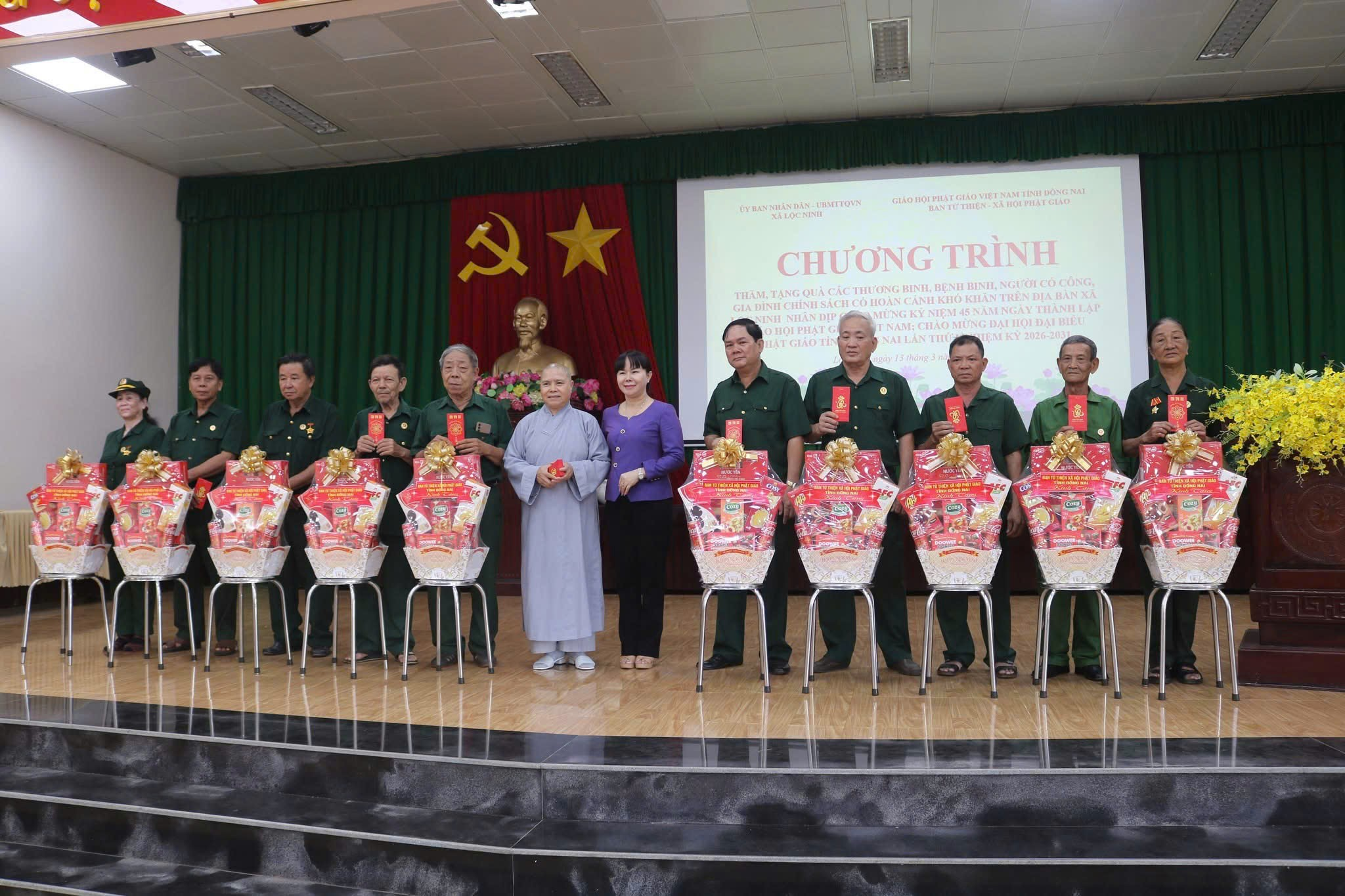 Thiết thực kỷ niệm 45 năm thành lập Giáo hội Phật giáo Việt Nam (GHPGVN) và chào mừng Đại hội đại biểu GHPGVN tỉnh Đồng Nai lần I, nhiệm kỳ 2026-2031, chào mừng Cuộc bầu cử đại biểu Quốc hội khóa XVI và đại biểu Hội đồng nhân dân các cấp, nhiệm kỳ 2026-2031, trong hai ngày 12 và 13/3/2026, Ban Từ thiện Xã hội Phật giáo tỉnh đã tổ chức chuỗi hoạt động thăm hỏi, tặng quà đầy ý nghĩa trên địa bàn tỉnh.