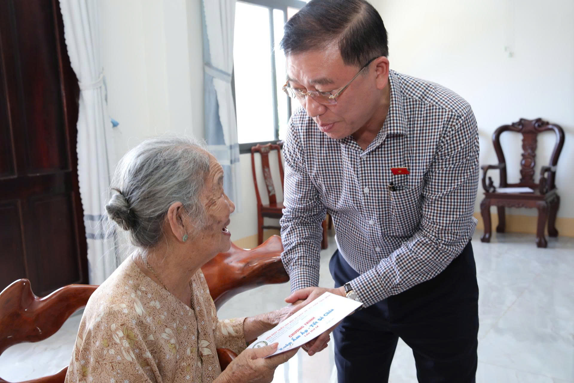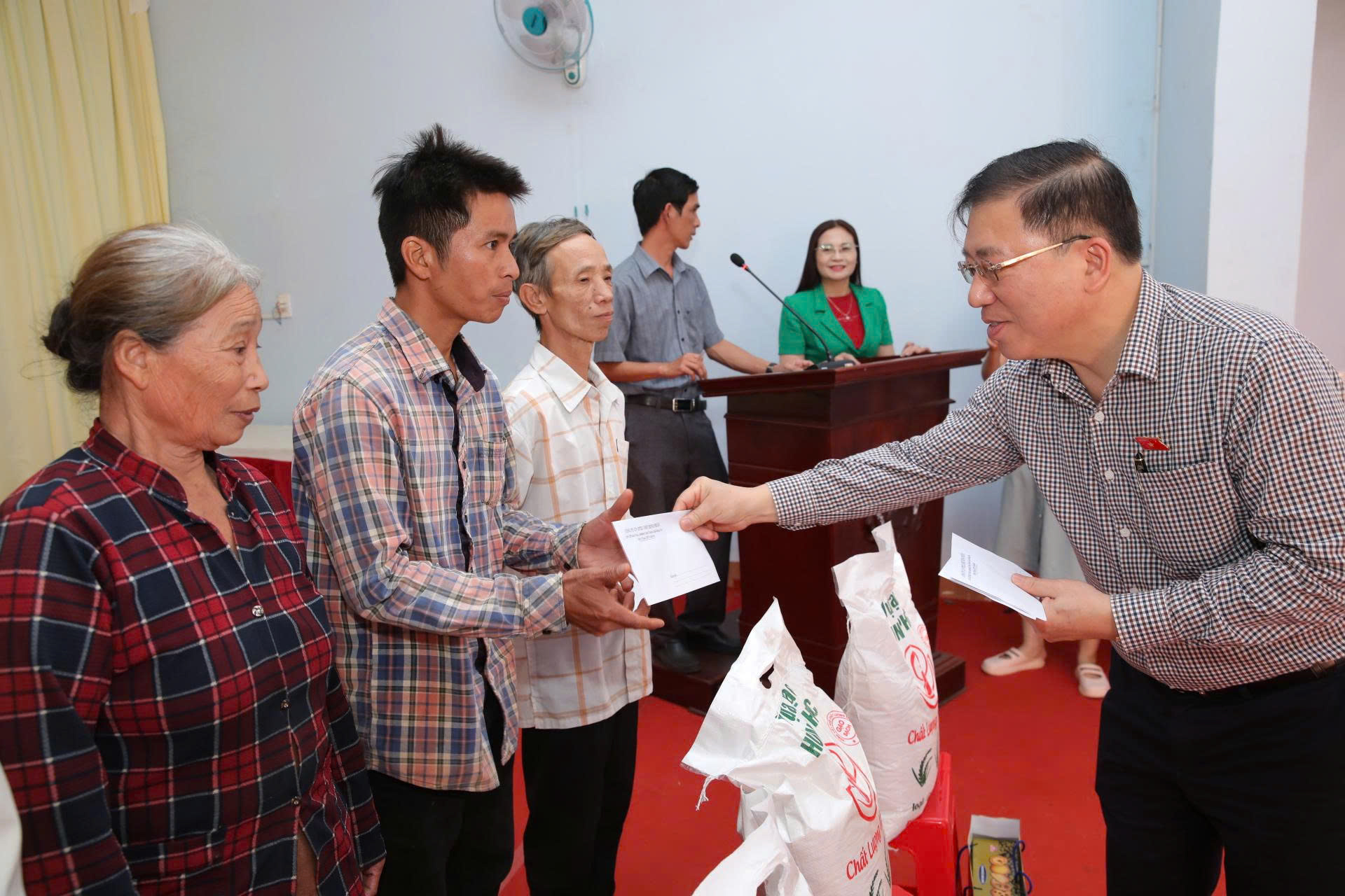 ĐBQH Nguyễn Tuấn Anh, Phó Chủ nhiệm Thường trực Ủy ban Công tác đại biểu cùng lãnh đạo Ủy ban MTTQ Việt Nam tỉnh tặng quà cho người dân