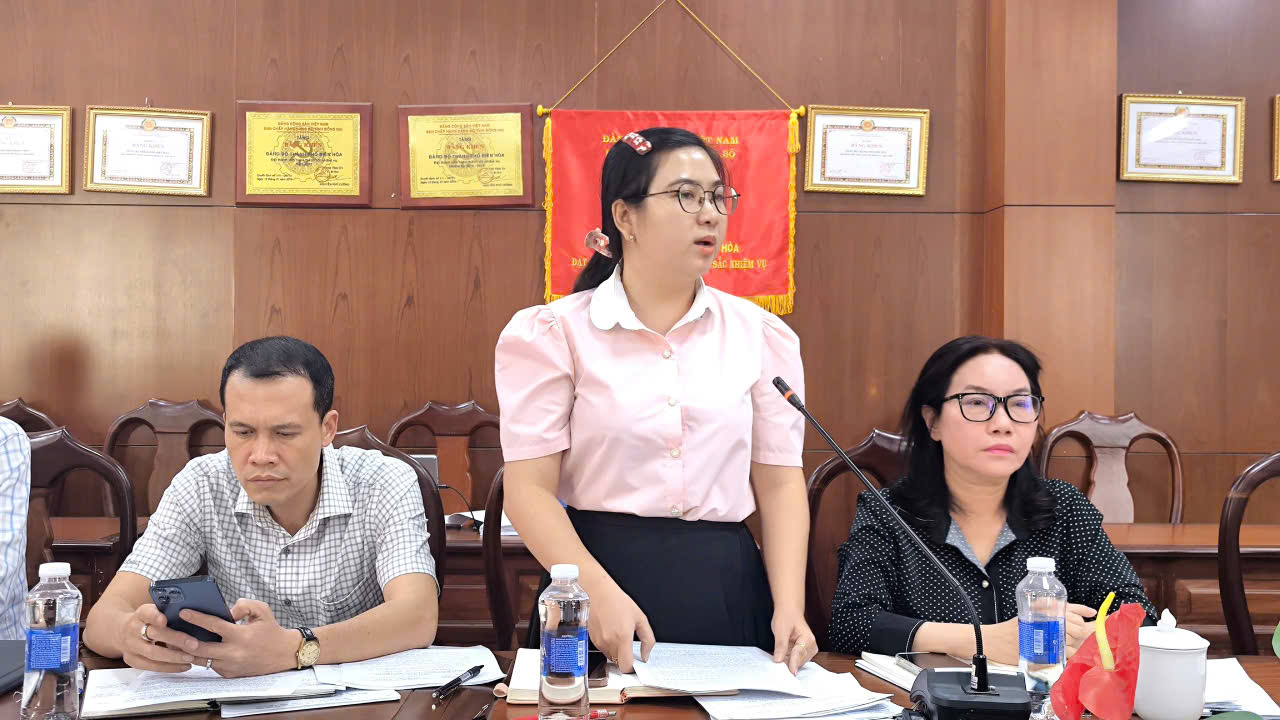 Phó Chủ tịch Ủy ban MTTQ Việt Nam tỉnh Đồng Nai, Lưu Thị Hà làm Trưởng đoàn phát biểu kết luận tại buổi kiểm tra, giám sát của đơn vị phường Trấn Biên