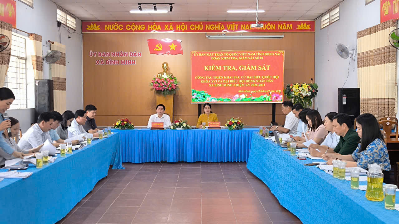 Ngày 22-1, Đoàn kiểm tra, giám sát của Ủy ban MTTQ Việt Nam tỉnh Đồng Nai về công tác triển khai bầu cử đại biểu Quốc hội khóa XVI và đại biểu HĐND các cấp nhiệm kỳ 2026-2031, do Phó Chủ tịch Ủy ban MTTQ Việt Nam tỉnh, Lưu Thị Hà làm trưởng đoàn, đã có buổi làm việc với xã Trảng Bom, xã Minh Hưng và phường Long Hưng.