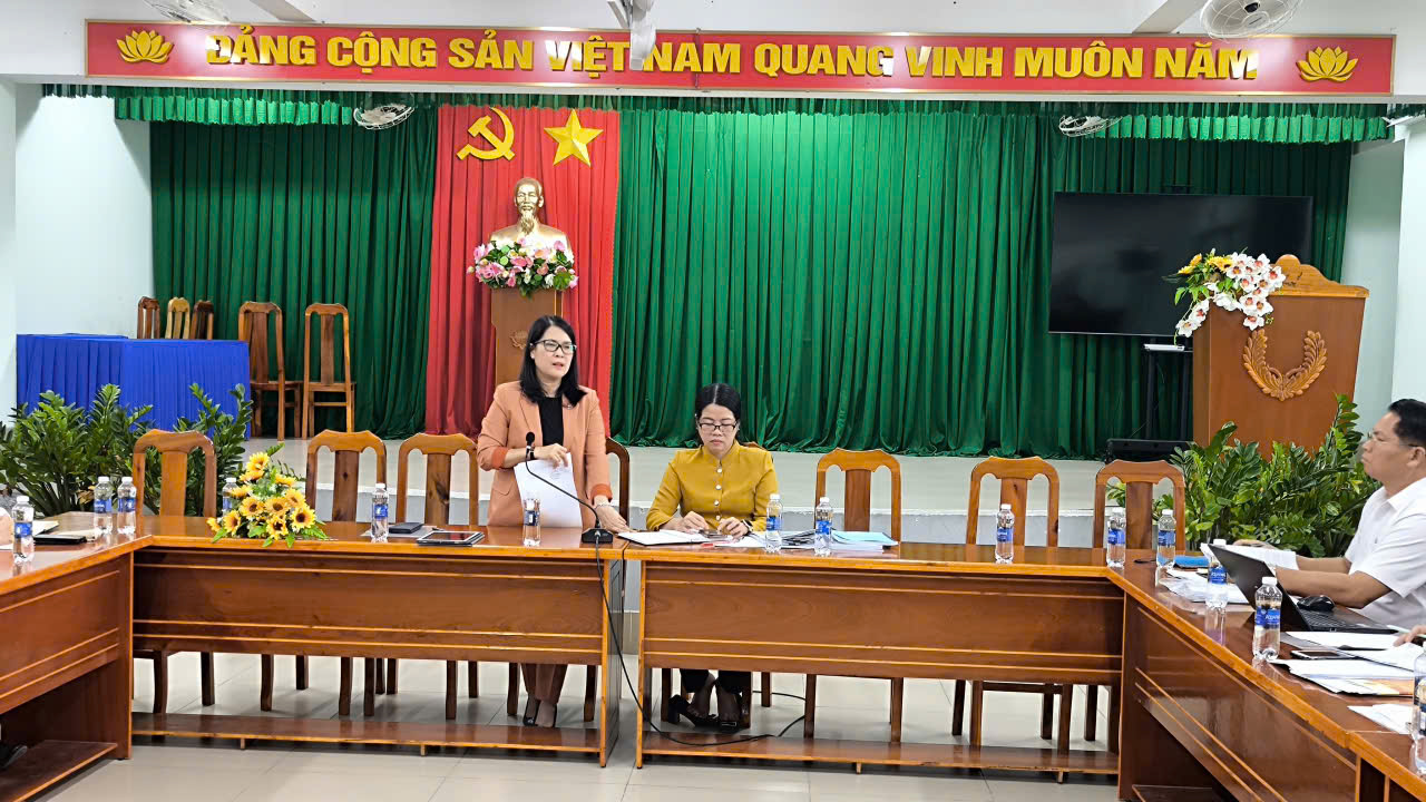 Phó Chủ tịch Ủy ban MTTQ Việt Nam tỉnh Đồng Nai, Lưu Thị Hà phát biểu tại buổi làm việc tại xã Trảng Bom.