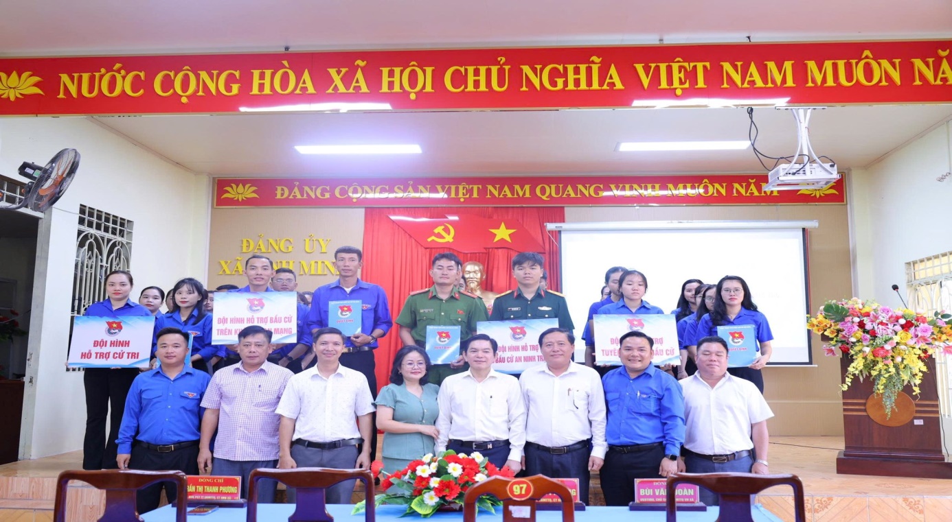 Lãnh đạo xã Bình Minh và các đội hình tình nguyện trước giờ ra quân tuyên truyền bầu cử