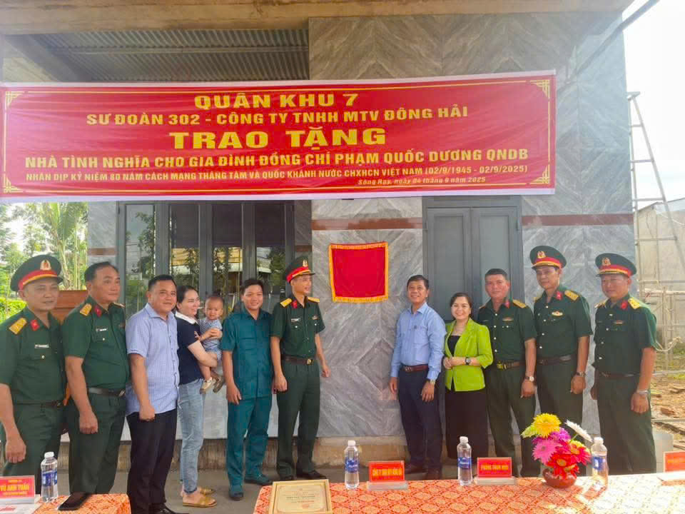 Sáng ngày 04/9/2025, Ủy ban MTTQ Việt Nam xã Sông Ray phối hợp với Sư đoàn 302 đã long trọng tổ chức Lễ Bàn giao nhà tình nghĩa cho gia đình đồng chí Thiếu úy Phạm Quốc Dương - quân nhân dự bị, tại ấp 11, xã Sông Ray.