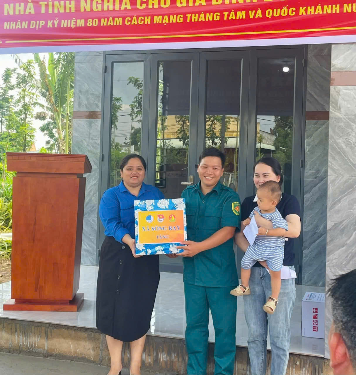 Đoàn thanh niên xã tặng quà cho gia đình đồng chí Phạm Quốc Dương