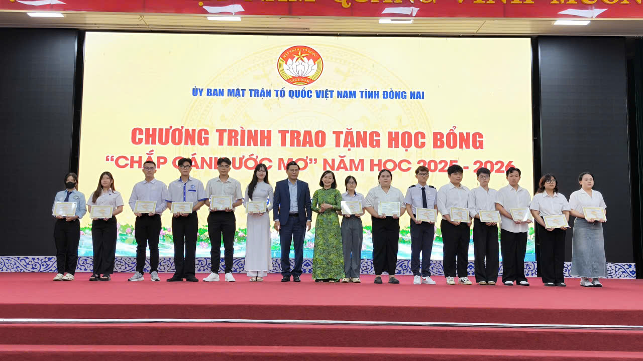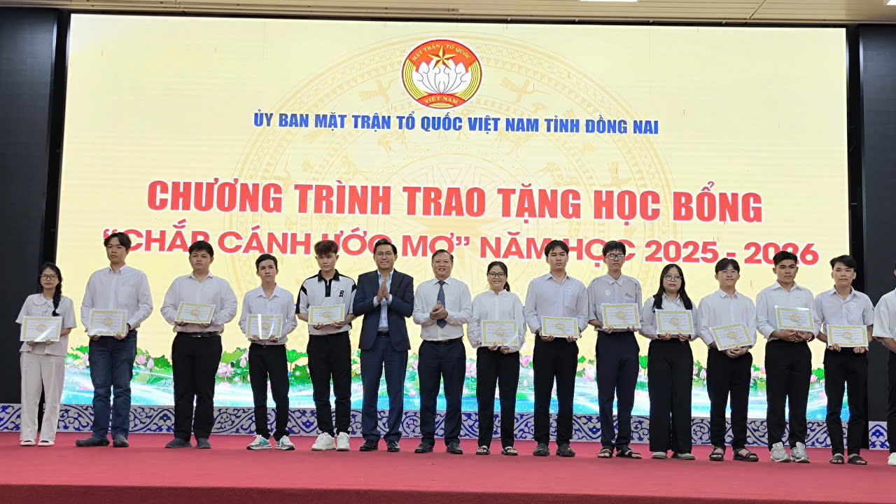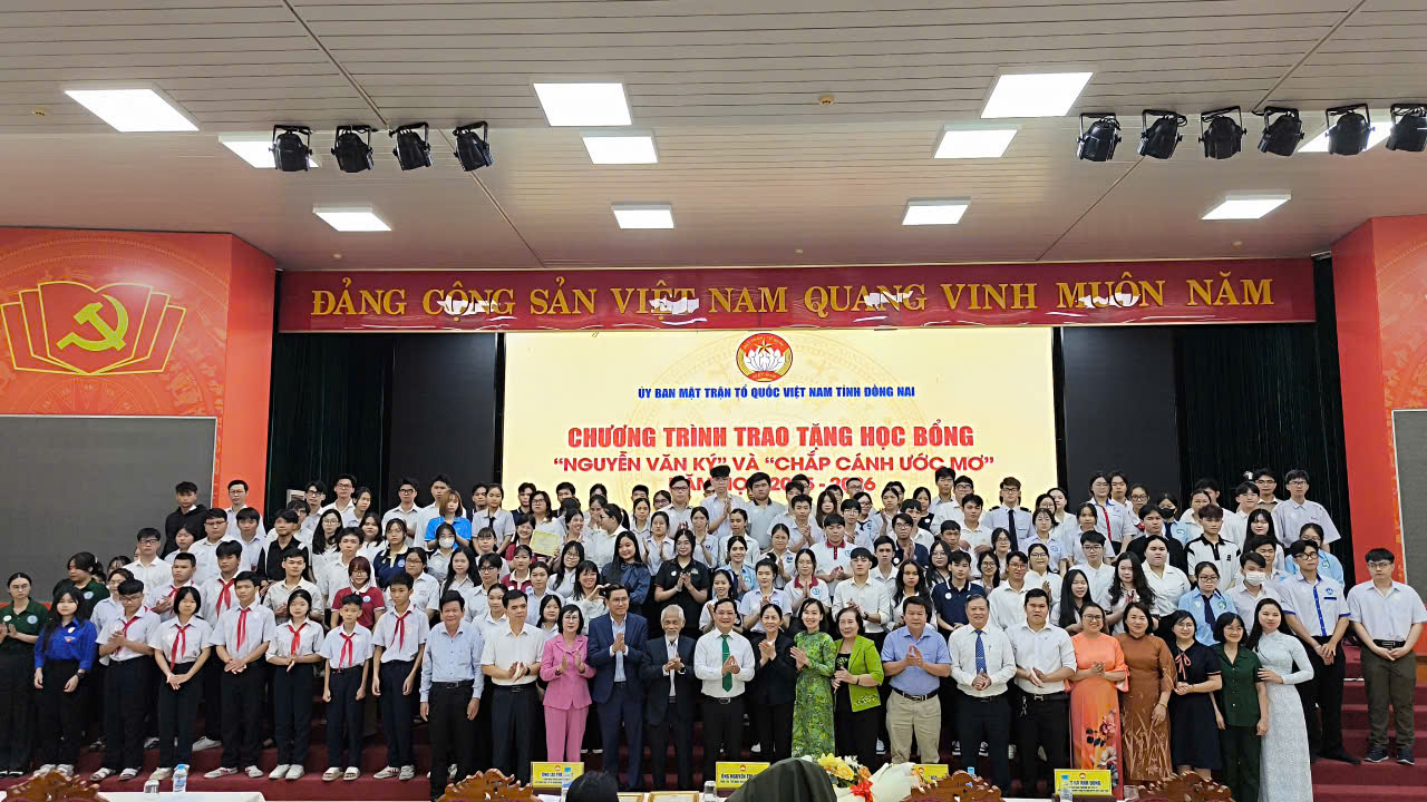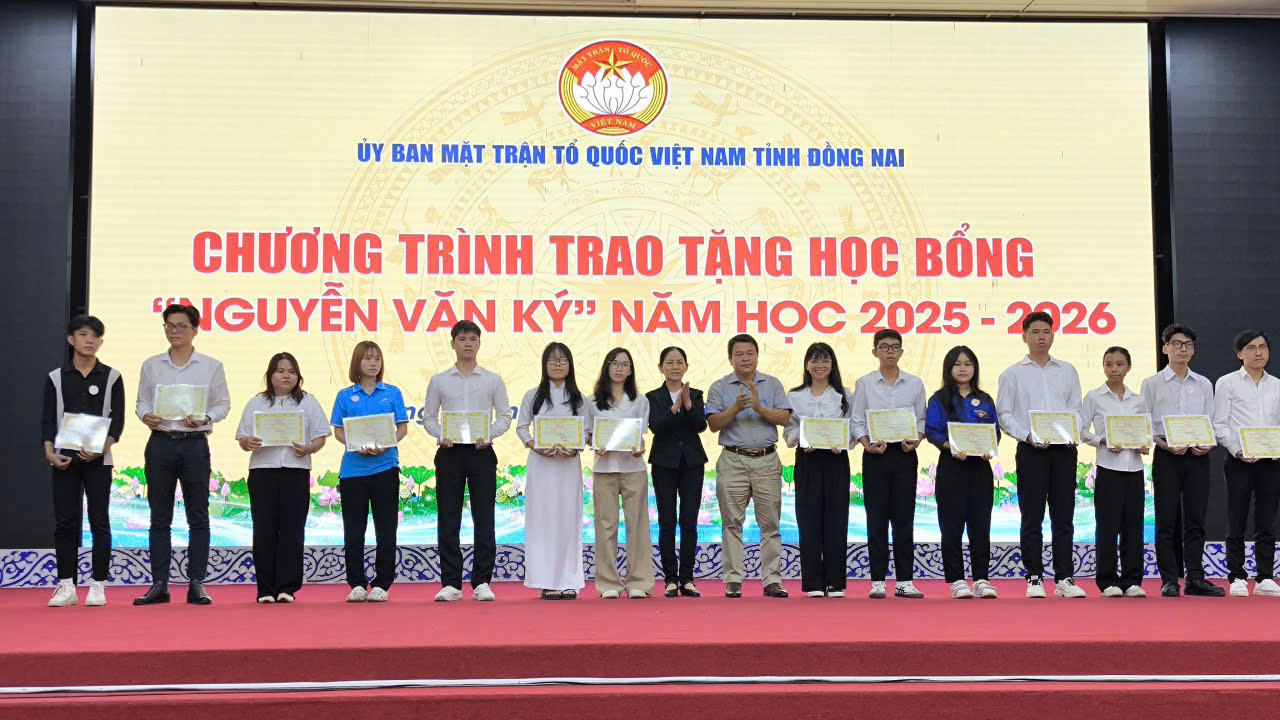 (Đồng Nai) – Sáng ngày 28/12, Ban Thường trực Ủy ban MTTQ Việt Nam tỉnh Đồng Nai đã long trọng tổ chức Chương trình trao tặng học bổng “Nguyễn Văn Ký” và “Chắp cánh ước mơ” năm học 2025 – 2026. Đây là hoạt động nhân văn sâu sắc, thể hiện sự quan tâm của Đảng bộ, chính quyền và Mặt trận Tổ quốc tỉnh trong việc chăm lo cho thế hệ tương lai của địa phương.