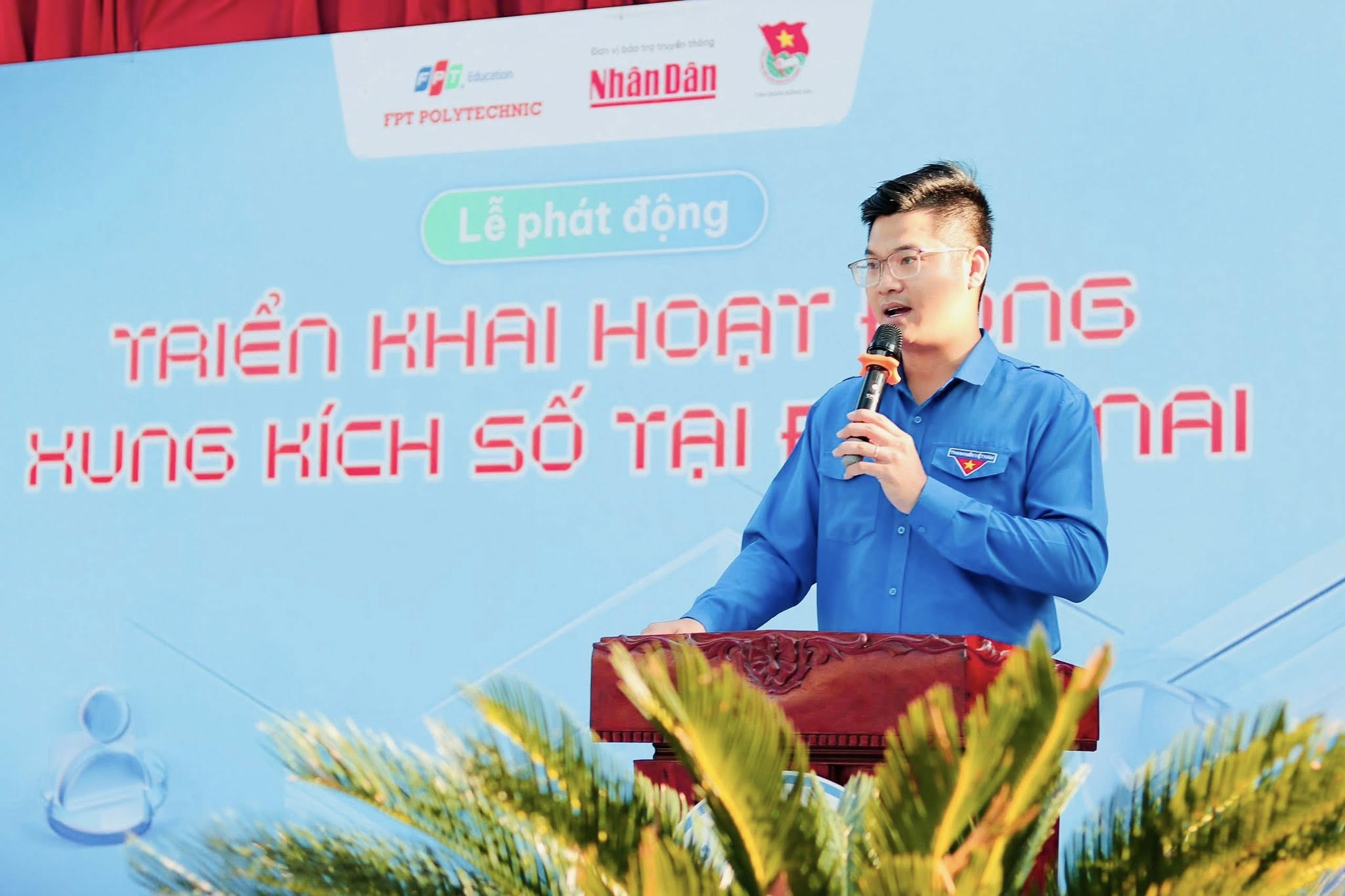 Đồng chí Phan Thế Công – Phó Bí thư Tỉnh đoàn phát biểu tại Lễ phát động triển khai hoạt động xung kích số, mang sức trẻ và công nghệ vào công tác truyền thông (Ảnh Tỉnh Đoàn)