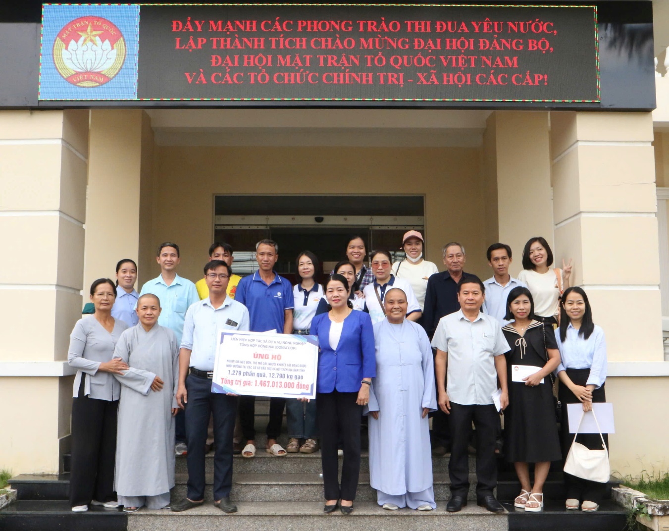 Sau lễ tiếp nhận, Ban Thường trực Ủy ban MTTQ Việt Nam tỉnh đã phối hợp cùng với Liên hiệp Hợp tác xã dịch vụ nông nghiệp tổng hợp Đồng Nai (Donacoop) đi thăm, tặng quà trực tiếp tại 03 cơ sở bảo trợ xã hội (Trung tâm Công tác xã hội và Quỹ bảo trợ trẻ em tỉnh Đồng Nai, phường Tam Hiệp; Trung tâm nuôi dưỡng trẻ mồ côi giáo xứ Hà Nội, phường Long Bình; Cơ sở bảo trợ xã hội chùa Diệu Pháp, phường Phước Tân).