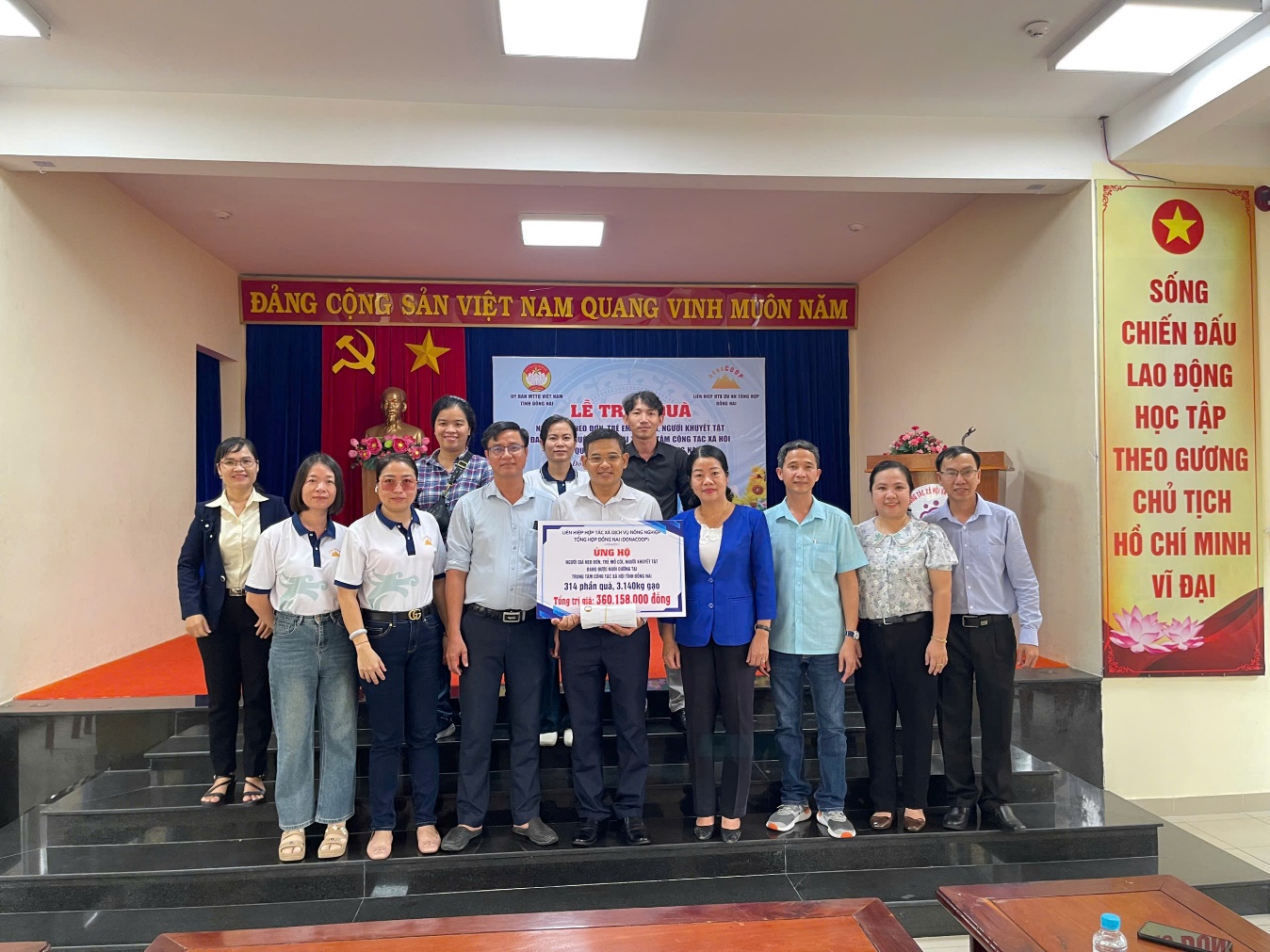 Đại diện đơn vị tài trợ có Ông Nguyễn Ngọc Tính - Phó Ban Quản lý dự án Liên hiệp Hợp tác xã dịch vụ nông nghiệp tổng hợp Đồng Nai (Donacoop); cùng đại diện 20 cơ sở bảo trợ xã hội trong tỉnh.