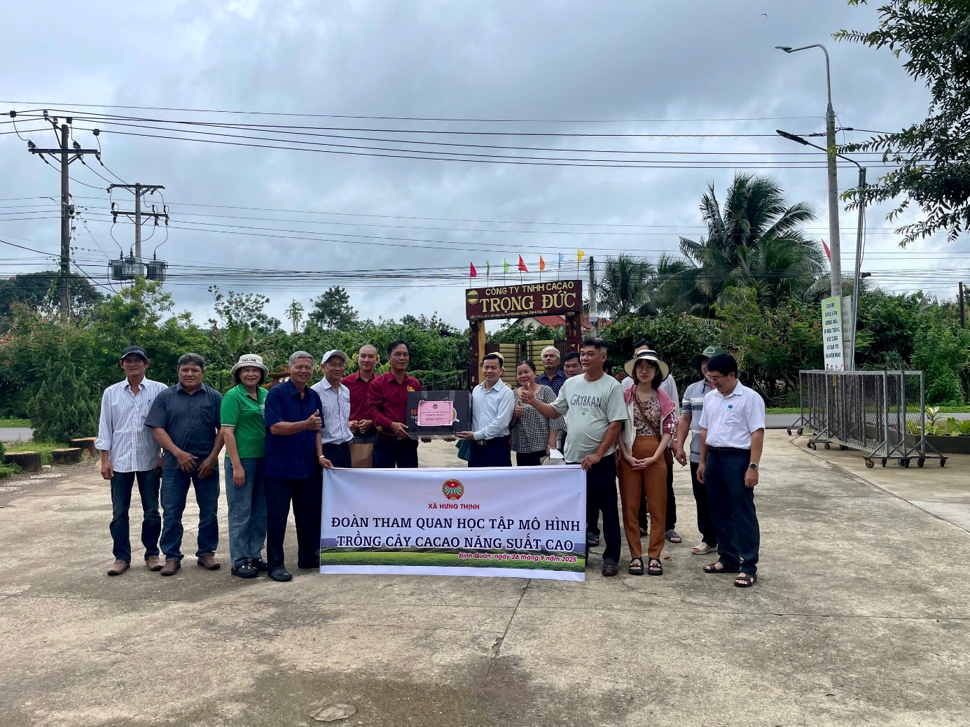 Sáng ngày 26/9/2025, Hội nông dân phối hợp với Phòng kinh tế xã Hưng Thịnh tổ chức Đoàn công tác đi khảo sát, học tập mô hình trồng cây cacao năng suất cao tại công ty cacao Trọng Đức và tổ hợp tác cacao xã Định Quán.