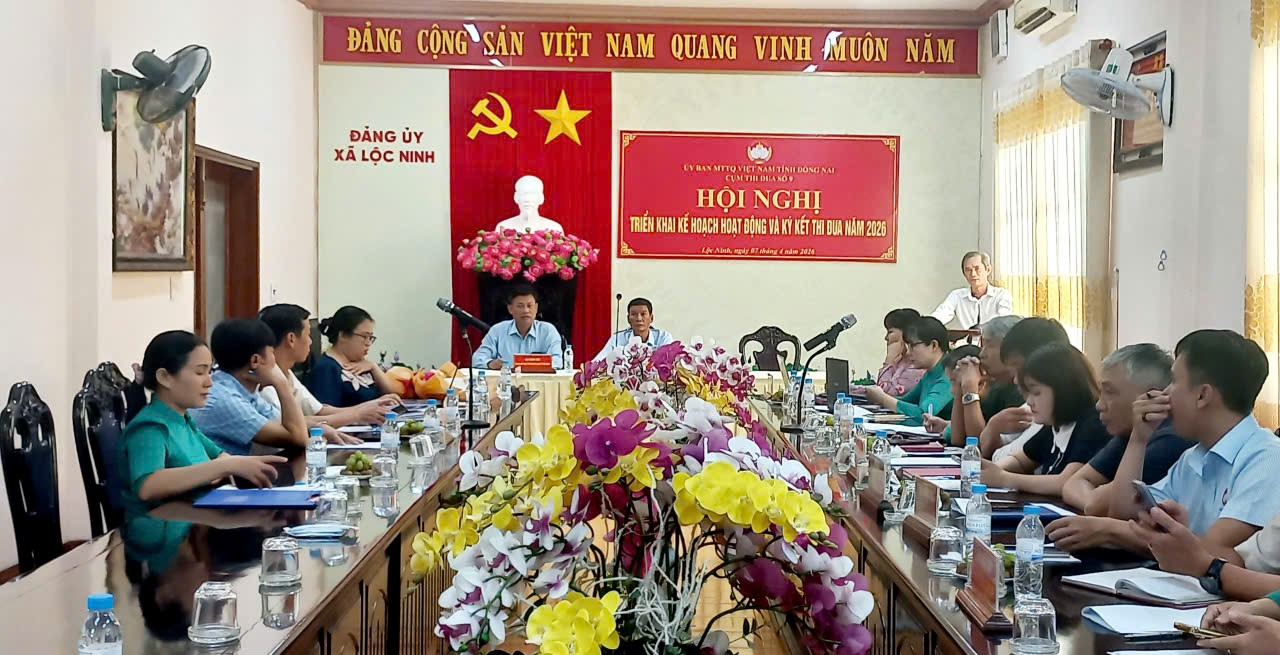 Sáng ngày 07/4/2026, tại Phòng họp Đảng ủy xã Lộc Ninh, Cụm thi đua số 9 Ủy ban Mặt trận Tổ quốc Việt Nam các xã phường trên địa bàn tỉnh Đồng Nai tổ chức hội nghị triển khai kế hoạch hoạt động và ký kết thi đua năm 2026.