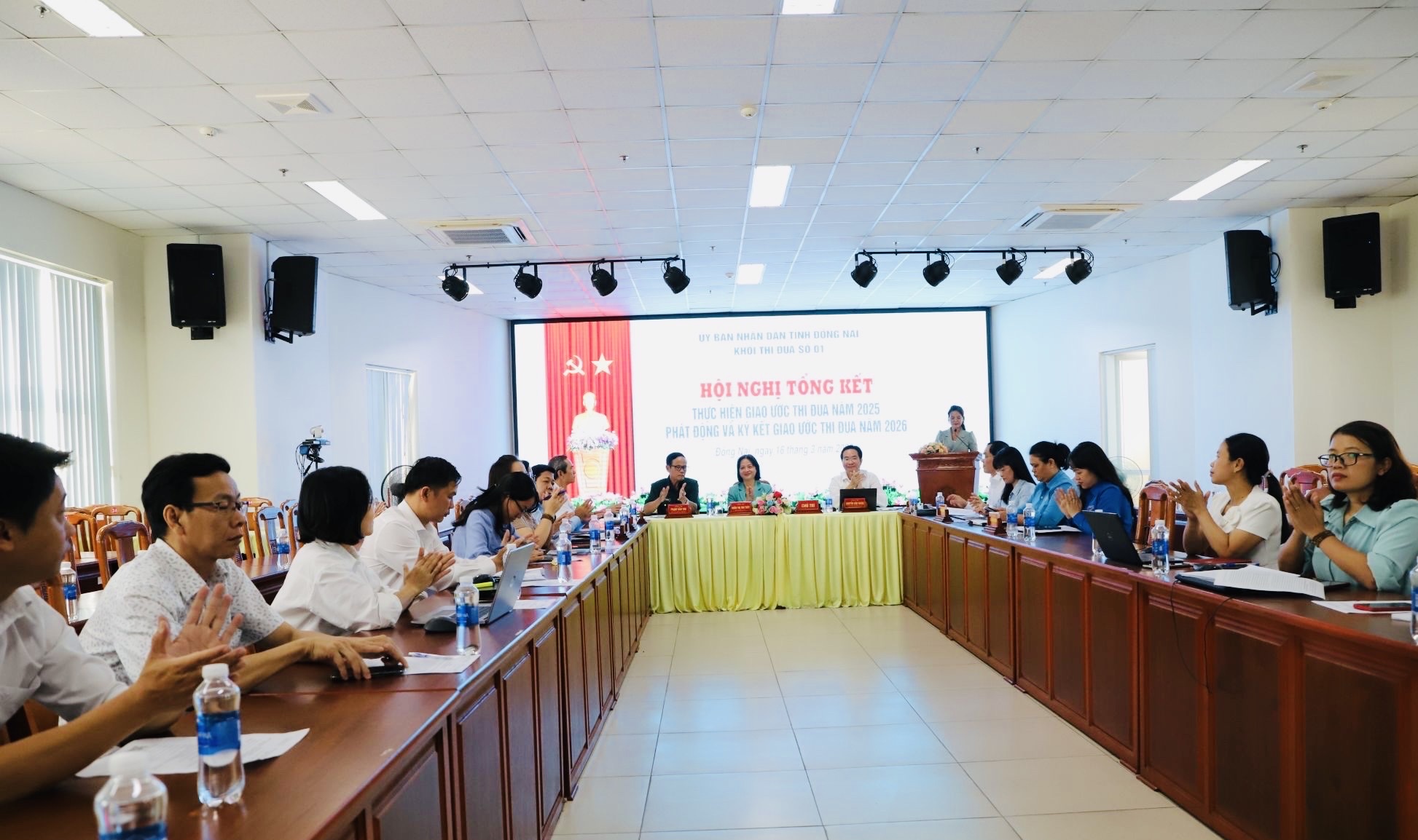 Hội nghị đánh giá, năm 2025 là năm hết sức đặc biệt đối với hệ thống chính trị nói chung, Khối thi đua 01 nói riêng khi thực hiện chủ trương sáp nhập tỉnh Đồng Nai và Bình Phước thành tỉnh Đồng Nai mới và thực hiện chính quyền địa phương hai cấp. Vượt qua những khó khăn, thách thức, các đơn vị trong Khối đã chủ động xây dựng kế hoạch, tổ chức nhiều hoạt động thiết thực chào mừng các ngày lễ lớn của đất nước cũng như tổ chức các phong trào thi đua chào mừng Đại hội Đảng các cấp, tiến tới Đại hội đại biểu toàn quốc lần thứ XIV của Đảng, Đại hội thi đua yêu nước toàn quốc lần thứ XI và Đại hội Mặt trận Tổ quốc Việt Nam và các tổ chức chính trị - xã hội nhiệm kỳ 2025 – 2030 đạt nhiều kết quả nổi bật. Tiêu biểu như: Trong phong trào “Chung sức xây dựng nông thôn mới”: Ủy ban MTTQ tỉnh đã vận động nhân dân đóng góp 17.908 ngày công, hiến hơn 81.000 m² đất để làm công trình công cộng, với tổng giá trị đóng góp ước tính 99 tỷ đồng. Hội Nông dân vận động nhân dân hiến 108.951 m² đất và làm mới 269 km đường giao thông nông thôn. Trong phong trào “Sáng - Xanh - Sạch - Đẹp”: Hội Phụ nữ tỉnh đã vận động hơn 79.000 hộ gia đình thực hiện phân loại rác thải, thu gom hơn 250 tấn chất thải tái chế, gây quỹ được gần 150 triệu đồng; Tỉnh đoàn đã huy động trồng mới hơn 328.212 cây xanh. Trong phong trào “Lao động giỏi, Lao động sáng tạo”, Liên đoàn Lao động tỉnh đã có 181 đề tài, 2.705 sáng kiến cải tiến kỹ thuật và hơn 12.000 ý tưởng sản xuất, mang lại giá trị làm lợi lên đến 122 tỷ đồng cho các doanh nghiệp và người lao động. Trong công tác an sinh xã hội: Ủy ban MTTQ Việt Nam tỉnh đã vận động được hơn 134,8 tỷ đồng hỗ trợ các địa phương bị ảnh hưởng nặng nề do thiên tai; Liên đoàn Lao động tỉnh tổ chức chương trình “Tết Sum vầy”, hỗ trợ hơn 77.000 đoàn viên và tặng 30.000 suất quà cho người lao động khó khăn; Hội Liên hiệp phụ nữ tỉnh duy trì chương trình “Mẹ đỡ đầu” cho 1.131 trẻ mồ côi với tổng trị giá hỗ trợ hơn 4,4 tỷ đồng; Hội Cựu chiến binh tỉnh đã xây dựng và sửa chữa 69 căn nhà “Nghĩa tình Cựu chiến binh” với kinh phí trên 3,5 tỷ đồng… Những kết quả nổi bật đó đã góp phần cùng với Đảng, Nhà nước hoàn thành mục tiêu, nhiệm vụ chính trị đã đề ra trong năm 2025.