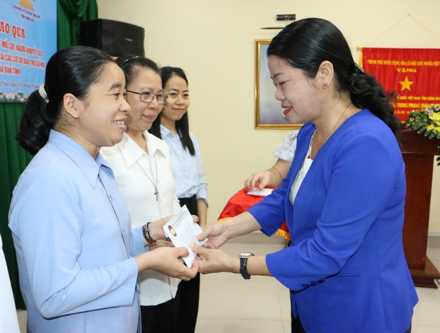 Sau Lễ trao quà tại Ủy ban MTTQ Việt Nam tỉnh, đồng chí Lưu Thị Hà, Phó chủ tịch Ủy ban MTTQ Việt Nam tỉnh cùng đại diện lãnh đạo Sở Y tế, nhà tài trợ đã đến thăm hỏi, động viên và trao quà tại 03 cơ sở bảo trợ xã hội: Trung tâm Công tác xã hội tỉnh Đồng Nai; Trung tâm Nuôi dưỡng trẻ em giáo xứ Hà Nội và Cơ sở nuôi dưỡng đối tượng xã hội Diệu Pháp.