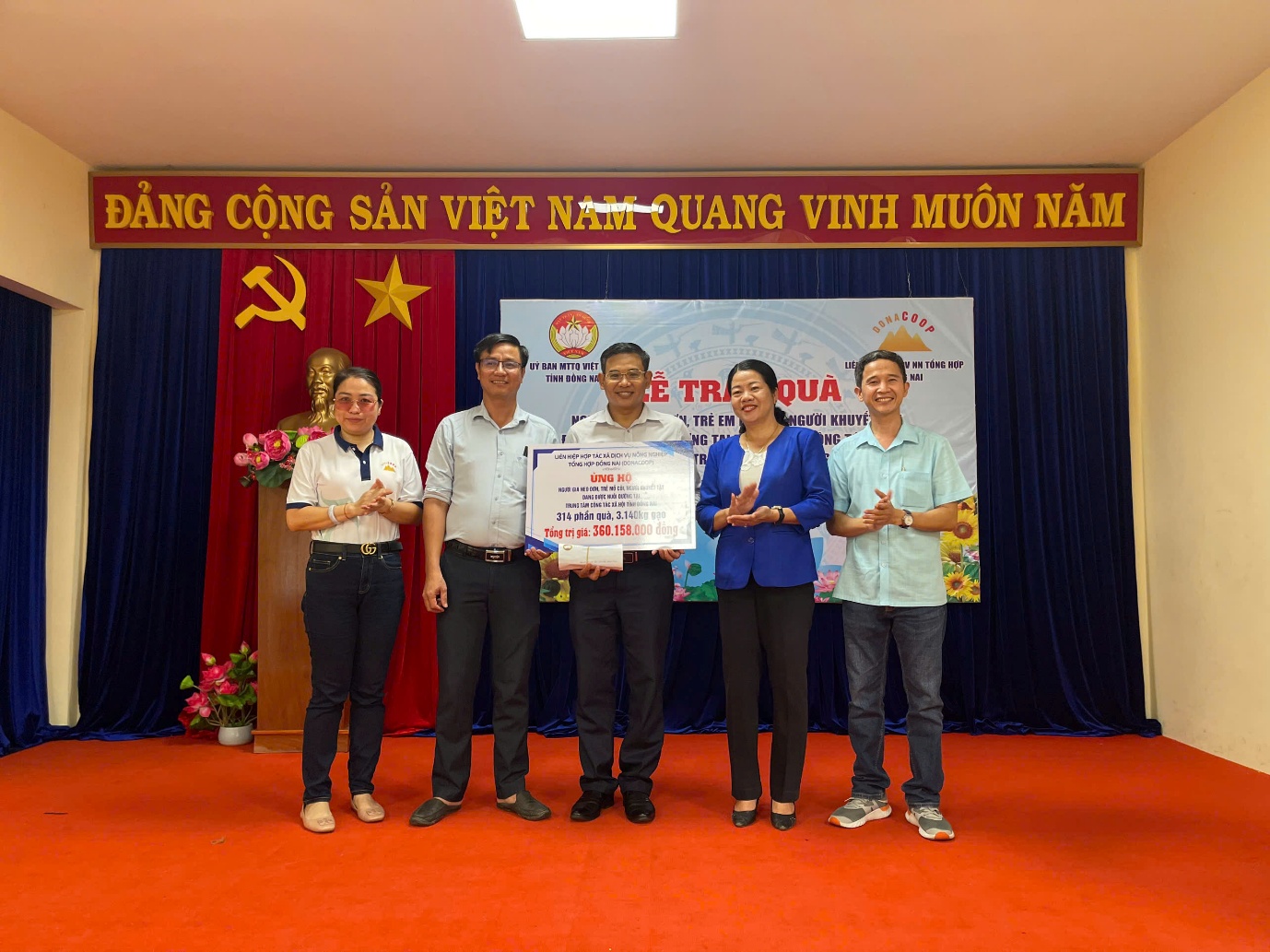 Dịp này, Liên hiệp Hợp tác xã Dịch vụ Nông nghiệp tổng hợp Đồng Nai (DONACOOP) đã tài trợ 1.279 phần quà và 12.790kg gạo, tổng trị giá 1.467.013.000 đồng (01 phần gồm 1.000.000 đồng và 10kg gạo) ủng hộ người già neo đơn, trẻ mồ côi, người khuyết tật đang được nuôi dưỡng tại 20 cơ sở bảo trợ xã hội trên địa bàn tỉnh Đồng Nai.