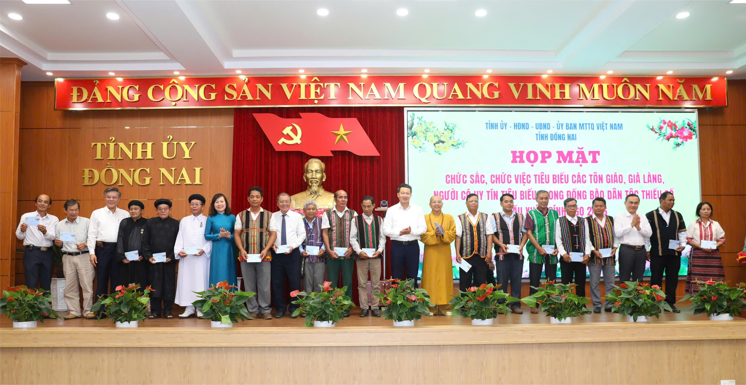 Dịp này các đồng chí lãnh đạo tỉnh đã trao tặng quà nhân dịp đầu xuân mới đến các vị chức sắc, chức việc tiêu biểu các tôn giáo, già làng, người có uy tín tiêu biểu.
