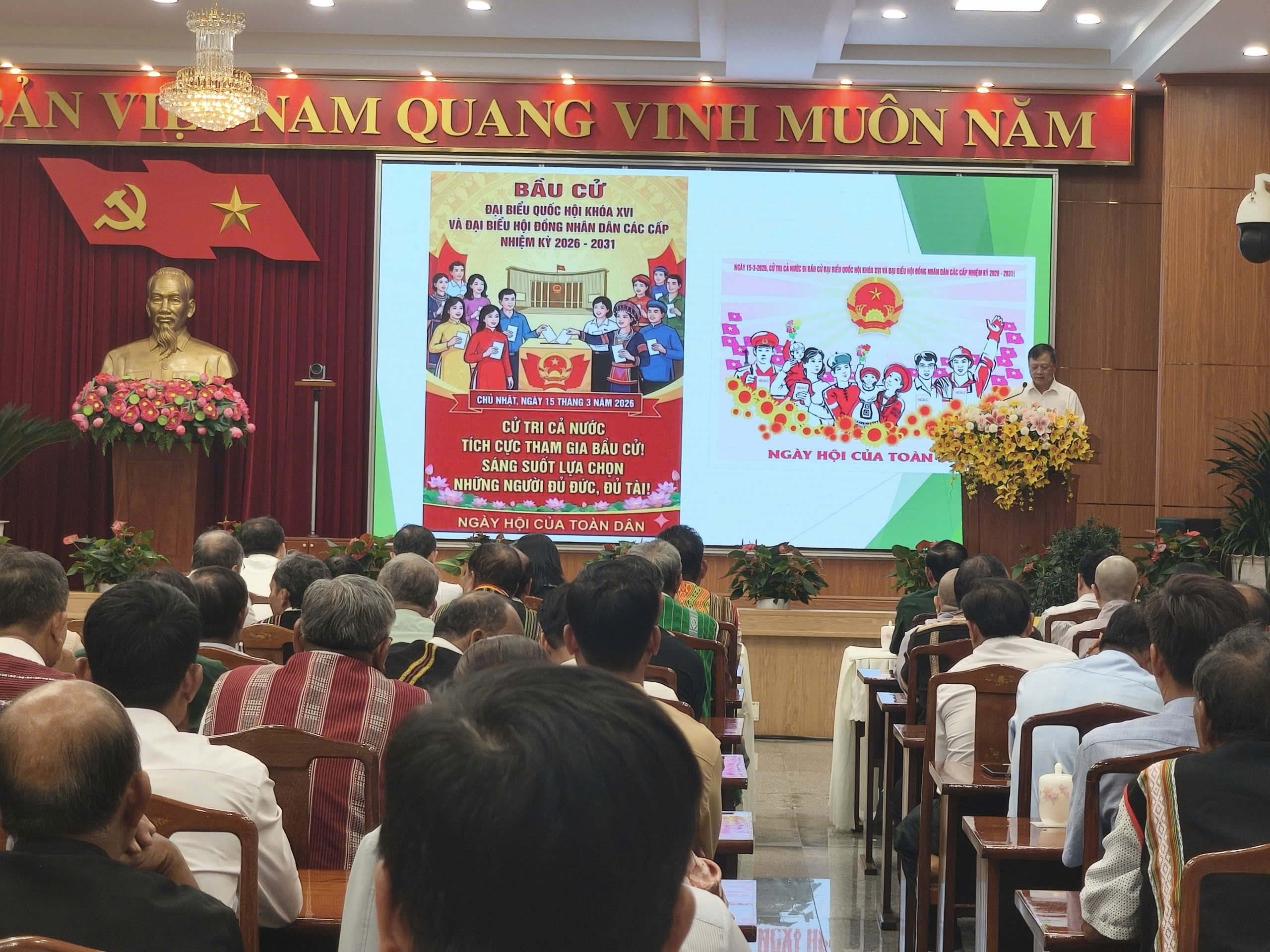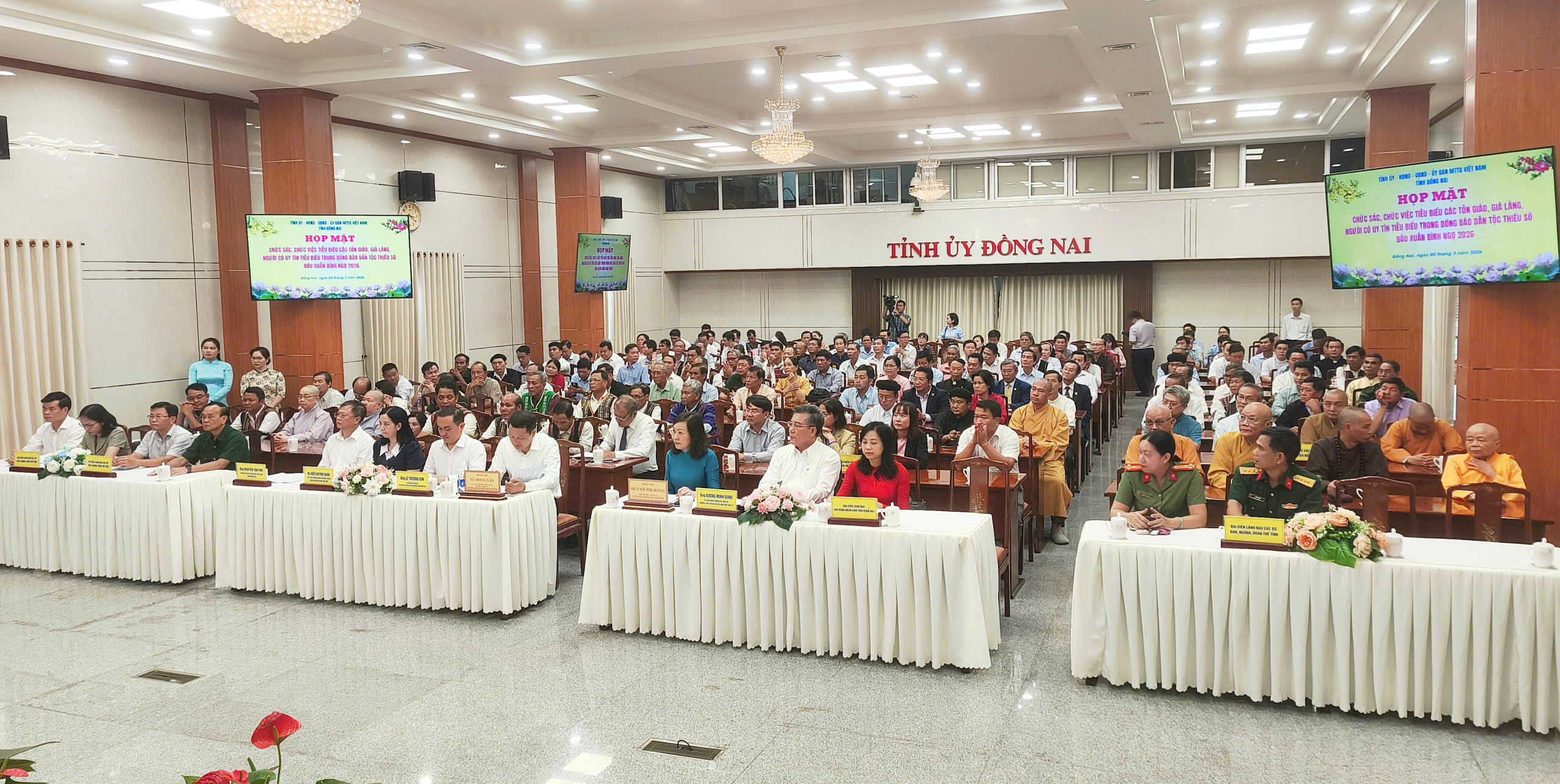 Tại biểu họp mặt, các đại biểu đã được nghe thông báo kết quả một số hoạt động nổi bật của các tôn giáo, già làng, người có uy tín đồng bào dân tộc thiểu số trong việc tham gia thực hiện các phong trào thi đua yêu nước, các cuộc vận động trên địa bàn tỉnh trong năm 2025 và xem phóng sự về kết quả phát triển kinh tế - xã hội của tỉnh năm 2025 và nhiệm vụ, giải pháp phát triển kinh tế - xã hội năm 2026.