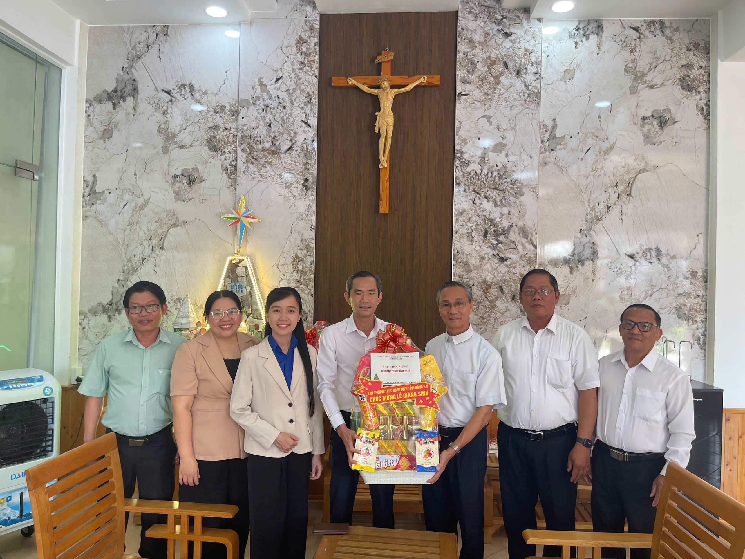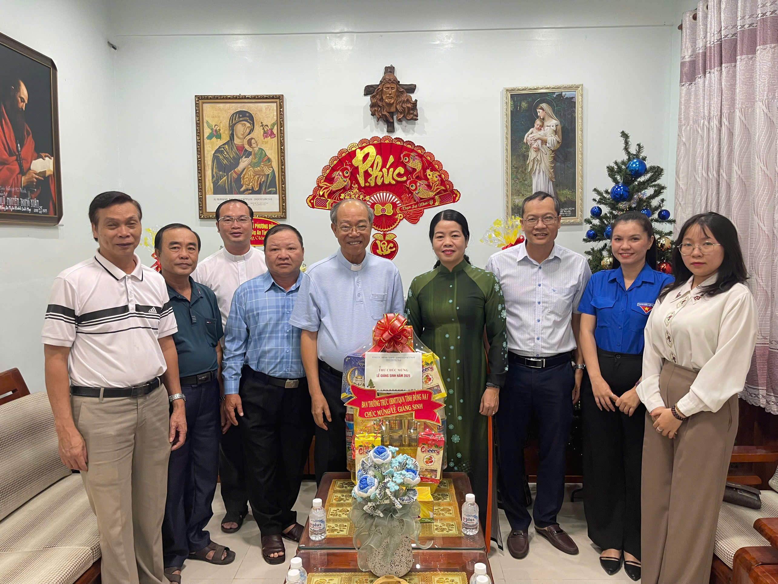 Bà Lưu Thị Hà, Phó Chủ tịch Ủy ban MTTQ Việt Nam tỉnh và đoàn công tác đến thăm, chúc mừng Linh mục Nguyễn Trọng Xuân, Phó Chủ tịch Ủy ban Đoàn kết Công giáo Việt Nam tỉnh, Quản hạt Giáo hạt Hòa Thanh, Chánh xứ Giáo xứ Lộ Đức, phường Long Bình