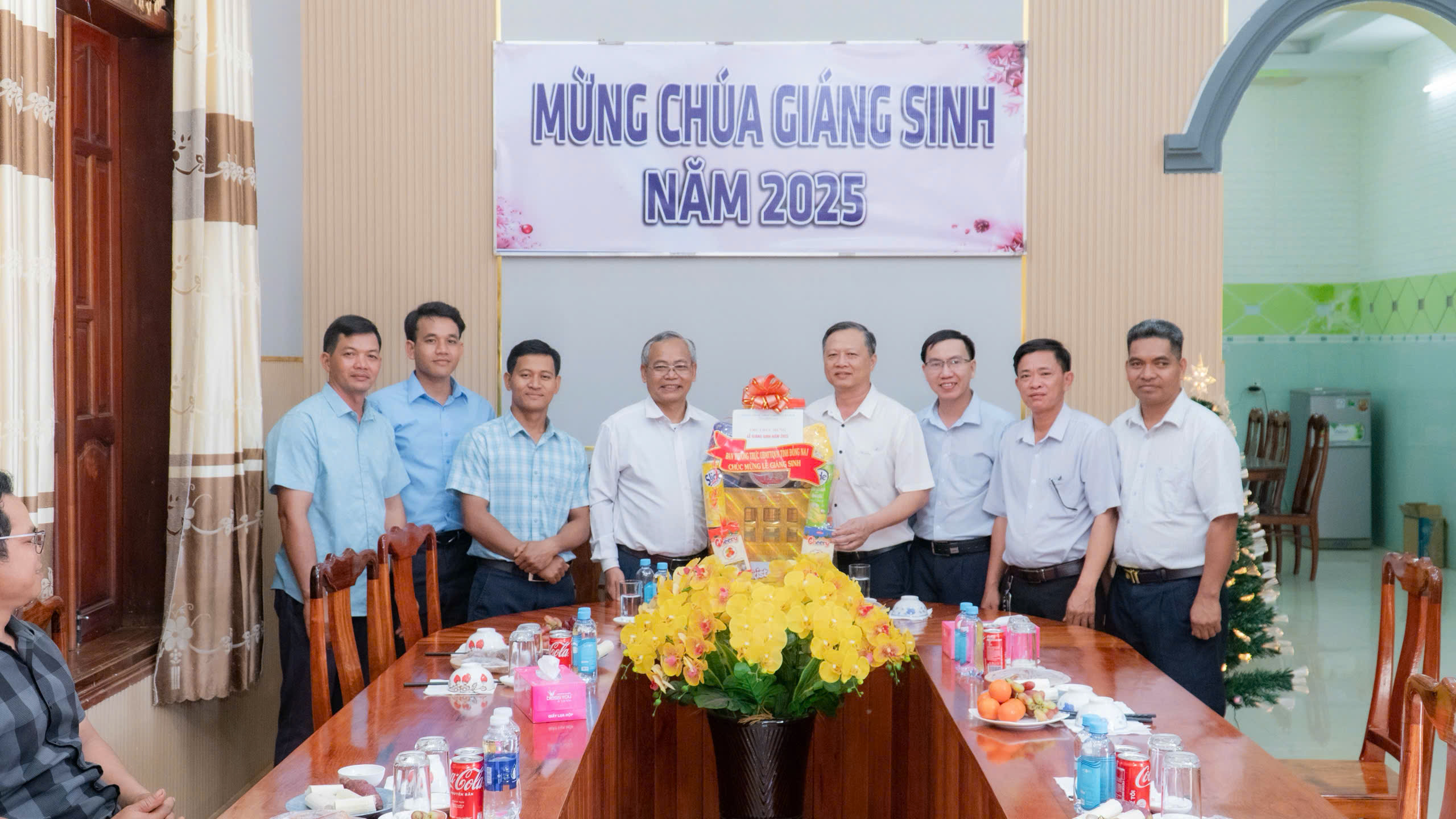 Ông Nguyễn Tấn Phú, Phó Chủ tịch Ủy ban MTTQ Việt Nam tỉnh (ngoài cùng bên phải) thăm, chúc mừng Giáng sinh Linh mục Trần Xuân Thảo, Chủ tịch Ủy ban Đoàn kết Công giáo Việt Nam tỉnh và Linh mục Trương Hồng Chương, Phó Chủ tịch Ủy ban Đoàn kết Công giáo Việt Nam tỉnh