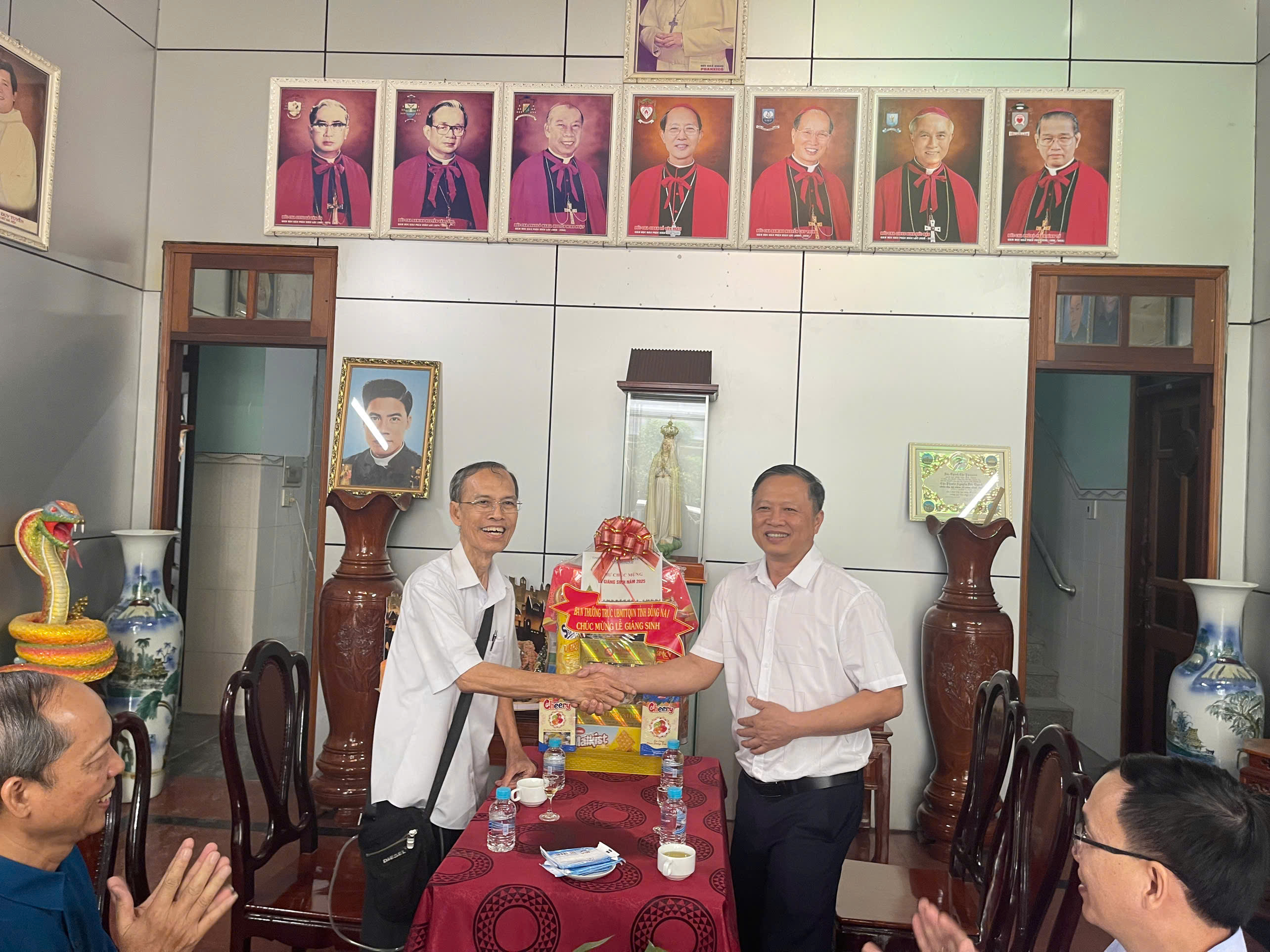 Ông Nguyễn Tất Độ, Phó Chủ tịch Ủy ban MTTQ Việt Nam tỉnh và đoàn công tác đến thăm, chúc mừng Linh mục Nguyễn Mạnh Cường, Quản hạt Giáo hạt Tân Mai, Chánh xứ Giáo xứ Tân Mai, phường Tam Hiệp