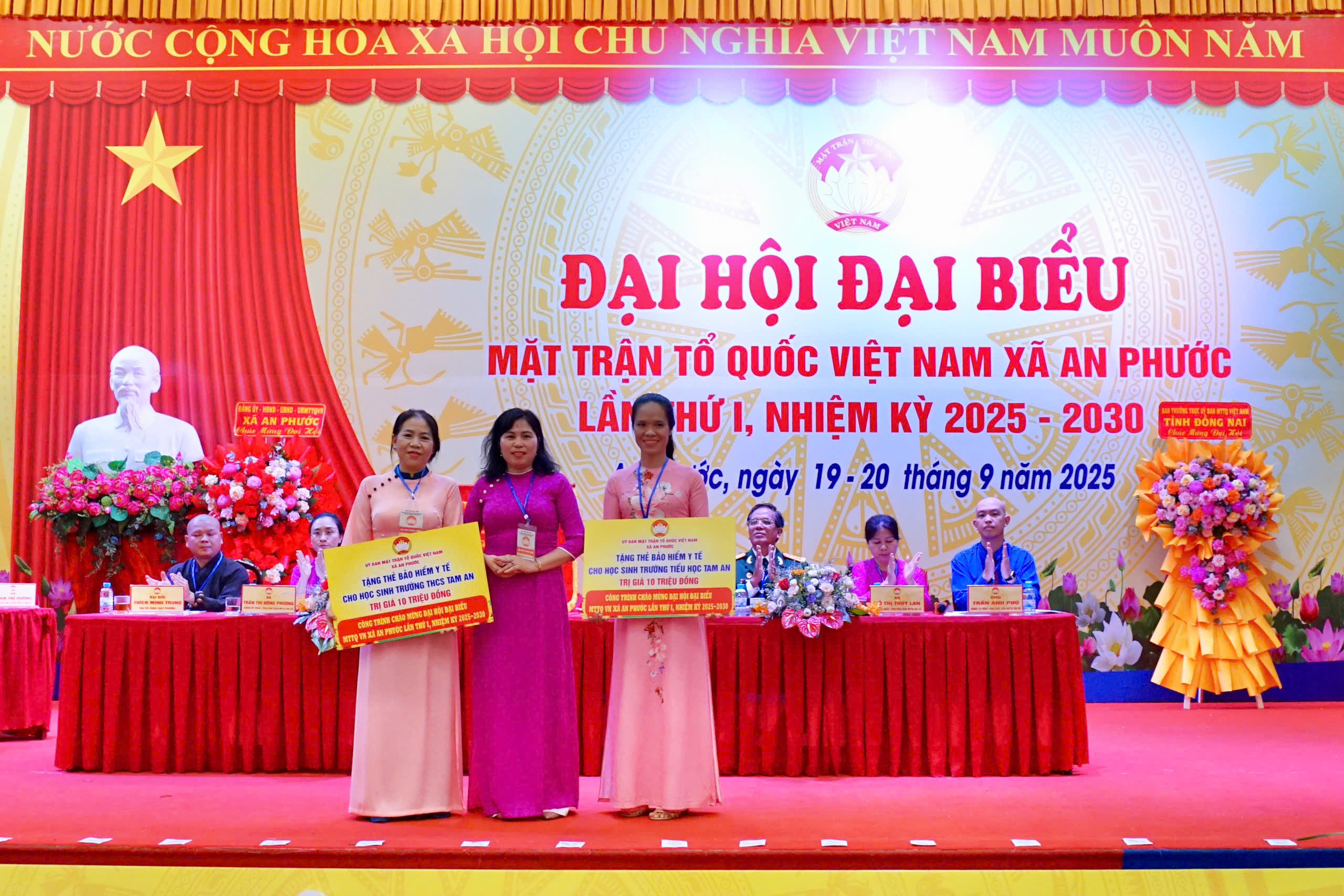 Đại hội đã trao công trình chào mừng Đại hội - Tặng 20 thẻ Bảo hiểm y tế cho học sinh tại 2 trường học trên địa bàn xã và đã khen thưởng 06 tập thể và 20 cá nhân có nhiều đóng góp trong công tác Mặt trận thời gian qua.