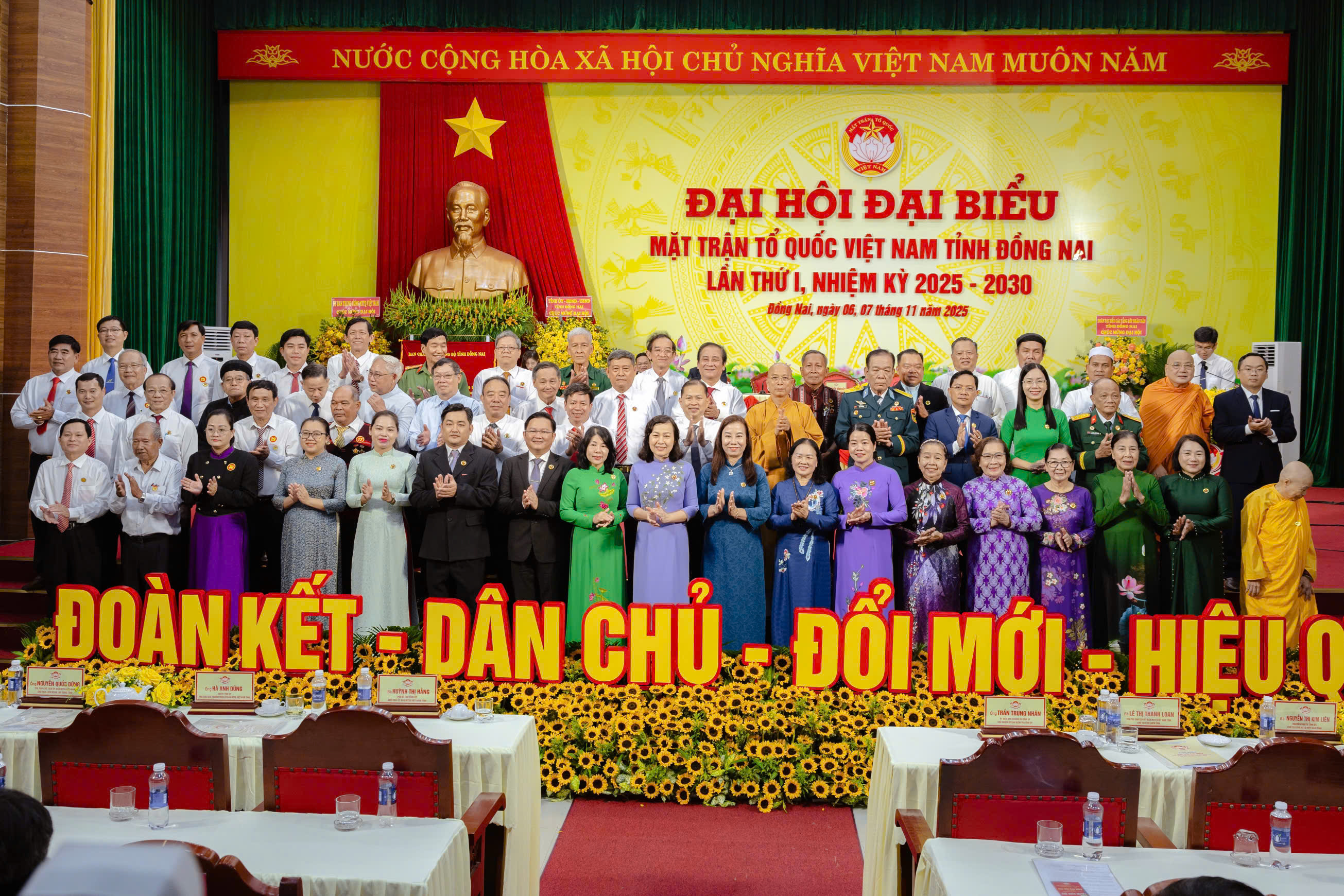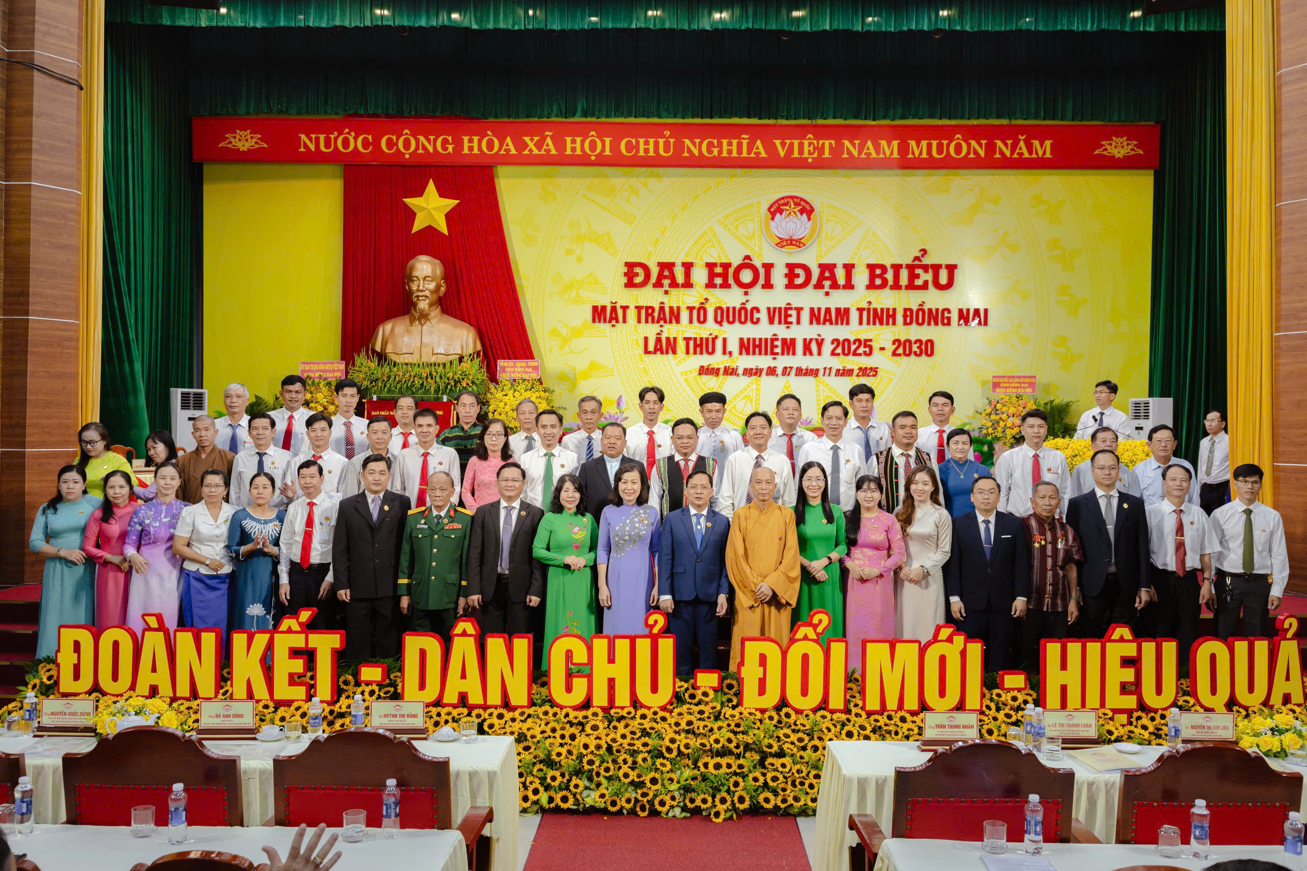 - Đại hội đại biểu Mặt trận Tổ quốc Việt Nam tỉnh Đồng Nai lần thứ I với chủ đề: “Phát huy vai trò nòng cốt chính trị, sức mạnh đại đoàn kết toàn dân tộc, khơi dậy mạnh mẽ ý chí tự lực, tự cường, đổi mới, sáng tạo, khát vọng cống hiến, chung sức, đồng lòng xây dựng tỉnh Đồng Nai phát triển xanh, giàu mạnh, văn minh, hiện đại” và phương châm: “Đoàn kết - dân chủ - đổi mới - hiệu quả”.