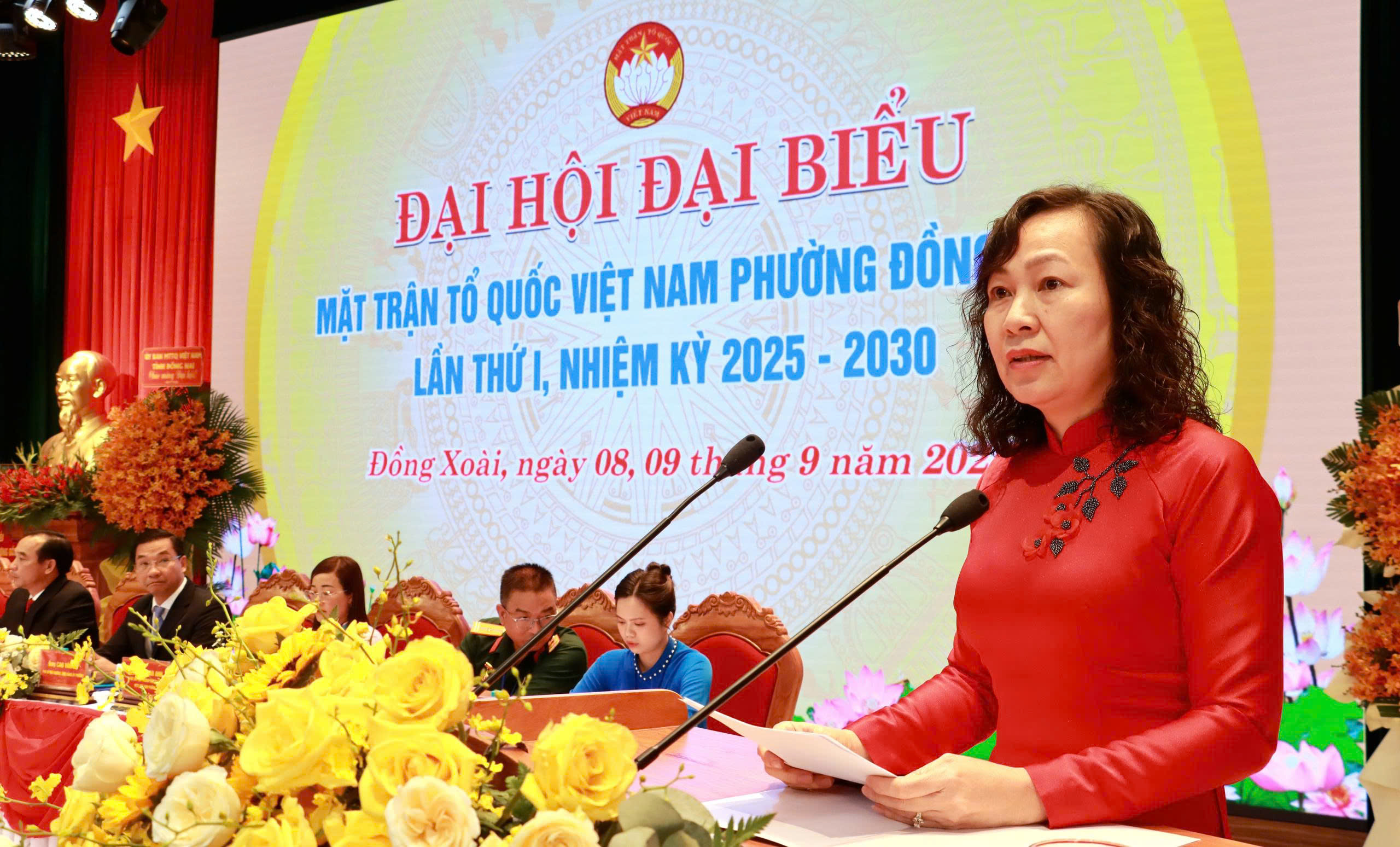 Tầm nhìn mới: Vượt lên thách thức Phát biểu chỉ đạo tại Đại hội, đồng chí Huỳnh Thị Hằng nhấn mạnh: bước vào nhiệm kỳ 2025 – 2030, Mặt trận phường Đồng Xoài cần phát huy những kết quả đã đạt được, đồng thời tập trung đổi mới mạnh mẽ công tác tuyên truyền, vận động để tạo sự đồng thuận xã hội đối với các dự án trọng điểm, chủ động và sắc bén trong đấu tranh trên không gian mạng. Đồng chí cũng đề nghị nâng cao chất lượng giám sát, phản biện xã hội, khơi dậy tinh thần sáng tạo, tự quản trong Nhân dân; đổi mới tư duy về an sinh xã hội theo hướng “trao cần câu thay vì cho con cá”; xây dựng đội ngũ cán bộ Mặt trận tinh gọn, hiệu lực, hiệu quả, thực sự là những người “trọng dân, gần dân, hiểu dân, học dân và có trách nhiệm với dân”.