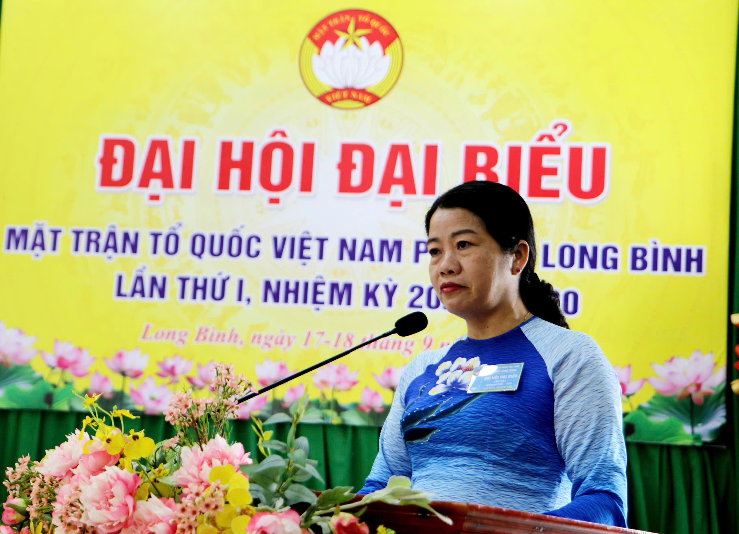 Phó Chủ tịch Ủy ban MTTQ Việt Nam tỉnh Lưu Thị Hà phát biểu chỉ đạo Đại hội MTTQVN xã Long Bình