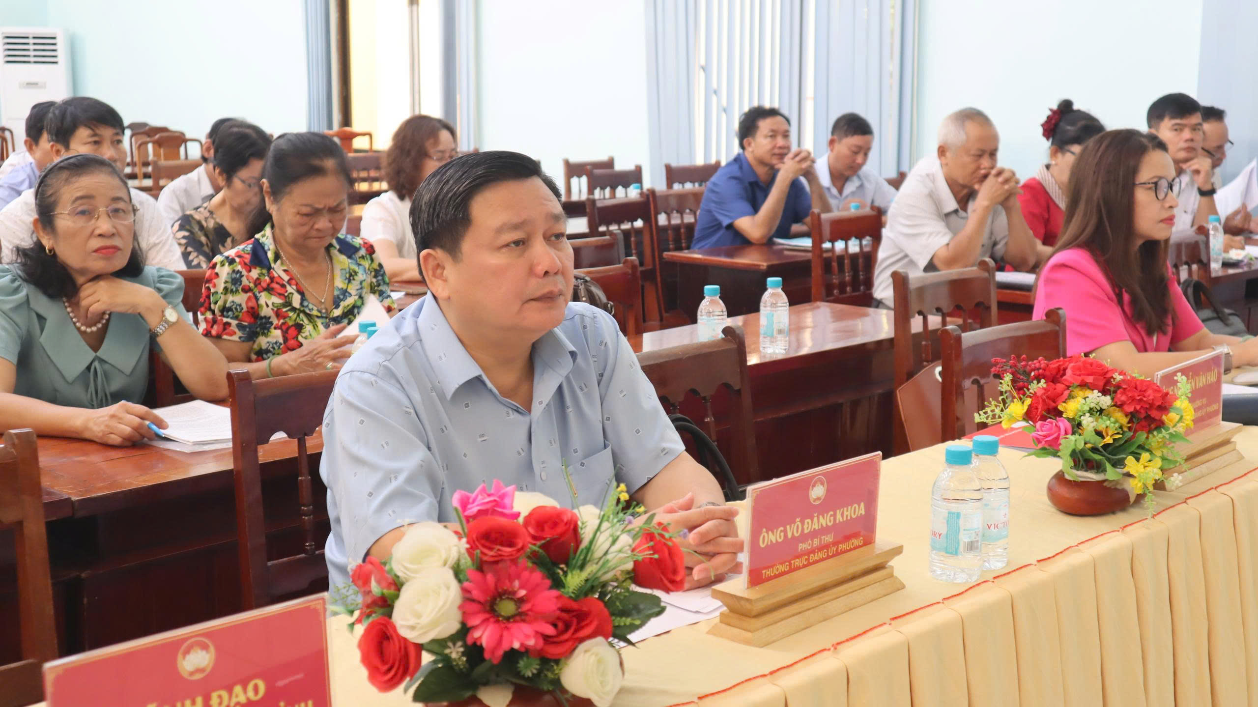Dự Hội nghị có ông Võ Đăng Khoa, Phó Bí thư Thường trực Đảng ủy; bà Hoàng Thúy Vũ, Ủy viên Ban Thường vụ Đảng ủy – Phó Chủ tịch UBND phường, cùng các Ủy viên Ủy ban MTTQ Việt Nam phường khóa I. Sự hiện diện đông đủ của các đại biểu thể hiện tinh thần trách nhiệm, đồng lòng chuẩn bị cho một kỳ Đại hội quan trọng, định hướng công tác Mặt trận trong năm năm tới.