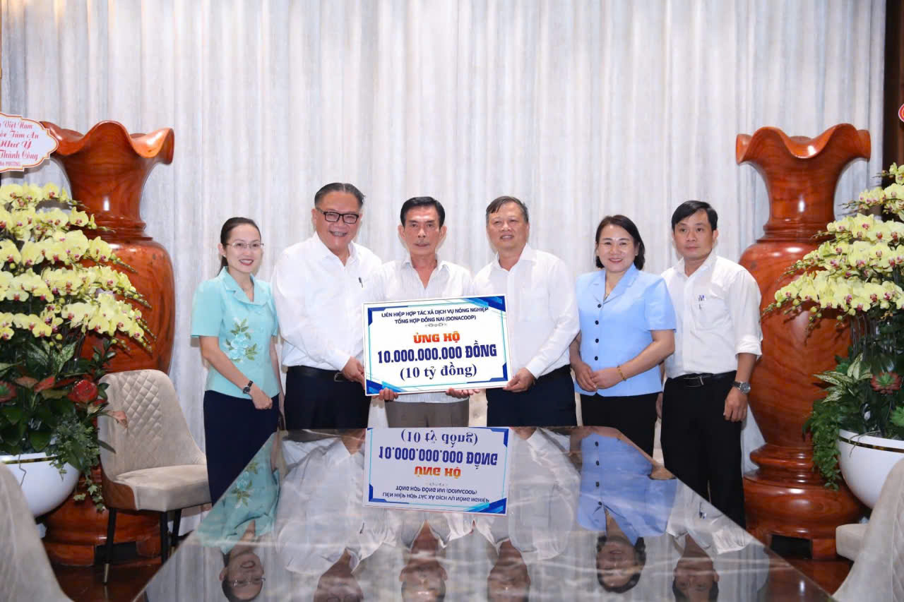 Ông Bùi Thanh Trúc - Chủ tịch Hội đồng quản trị, Tổng giám đốc Liên minh Hợp tác xã dịch vụ Nông nghiệp Tổng hợp Đồng Nai (DONACOOP) ủng hộ 10 tỷ đồng