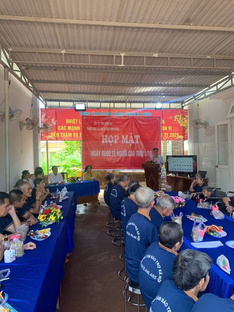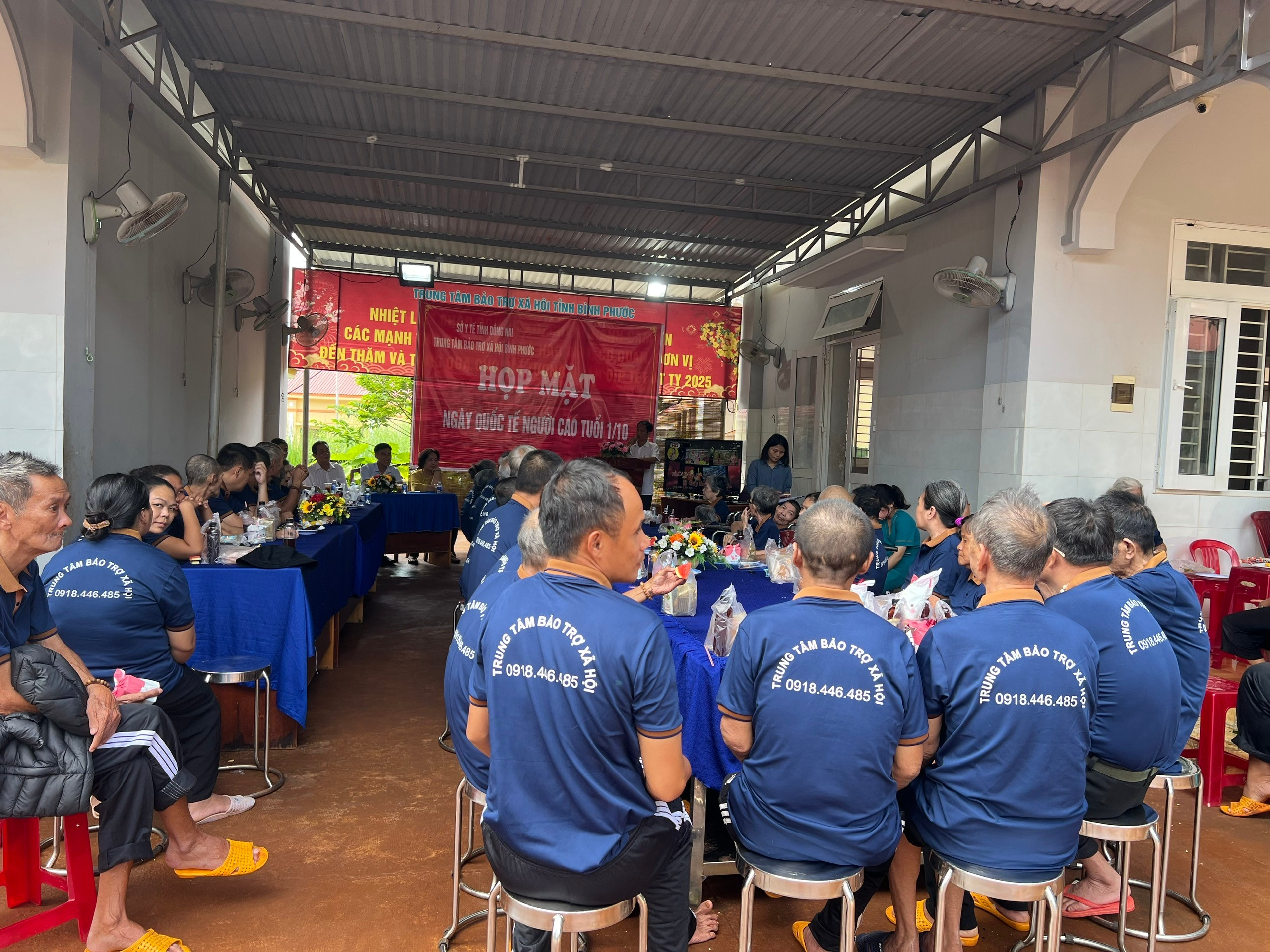 Sáng ngày 01/10/2025, nhân kỷ niệm 34 năm Ngày Quốc tế Người cao tuổi, Trung tâm Bảo trợ xã hội Bình Phước thuộc Sở Y tế tỉnh Đồng Nai đứng chân trên địa bàn xã Lộc Ninh - tỉnh Đồng Nai đã trang trọng tổ chức Chương trình Họp mặt dành cho các cụ ông, cụ bà đang sinh sống tại đây. Sự kiện có sự tham dự của Ban Giám đốc và toàn thể cán bộ, nhân viên Trung tâm; các thành viên Bếp ăn Thiện nguyện Hương Tiên - tổ chức thành viên trực thuộc Hội Bảo trợ Người khuyết tật - Trẻ mồ côi và Bệnh nhân nghèo huyện Lộc Ninh, tỉnh Bình Phước (cũ) thể hiện sự quan tâm sâu sắc của đơn vị và cộng đồng. Với chủ đề của năm 2025 là “Phát huy vai trò người cao tuổi trong kỷ nguyên vươn mình của dân tộc” và “Chung tay chăm sóc phát huy vai trò người cao tuổi - Xây dựng gia đình, quê hương giàu đẹp, văn minh”, buổi họp mặt diễn ra trong không khí vui tươi và đầm ấm. Mở đầu chương trình là các bài tập thể dục nhẹ nhàng và các tiết mục văn nghệ "cây nhà, lá vườn" do chính các cụ biểu diễn, tạo nên một không gian giao lưu gần gũi và thân tình.