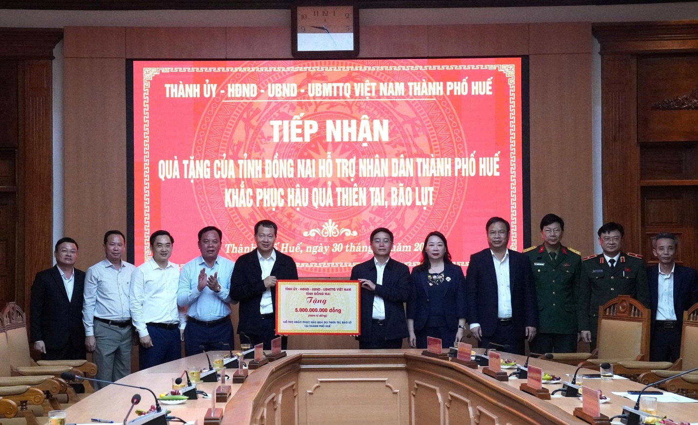 Tại thành phố Huế hỗ trợ 06 tỷ đồng (gồm 05 tỷ đồng khắc phục thiên tai và 01 tỷ đồng hỗ trợ các gia đình cán bộ, chiến sĩ lực lượng vũ trang bị ảnh hưởng do ngập lụt).