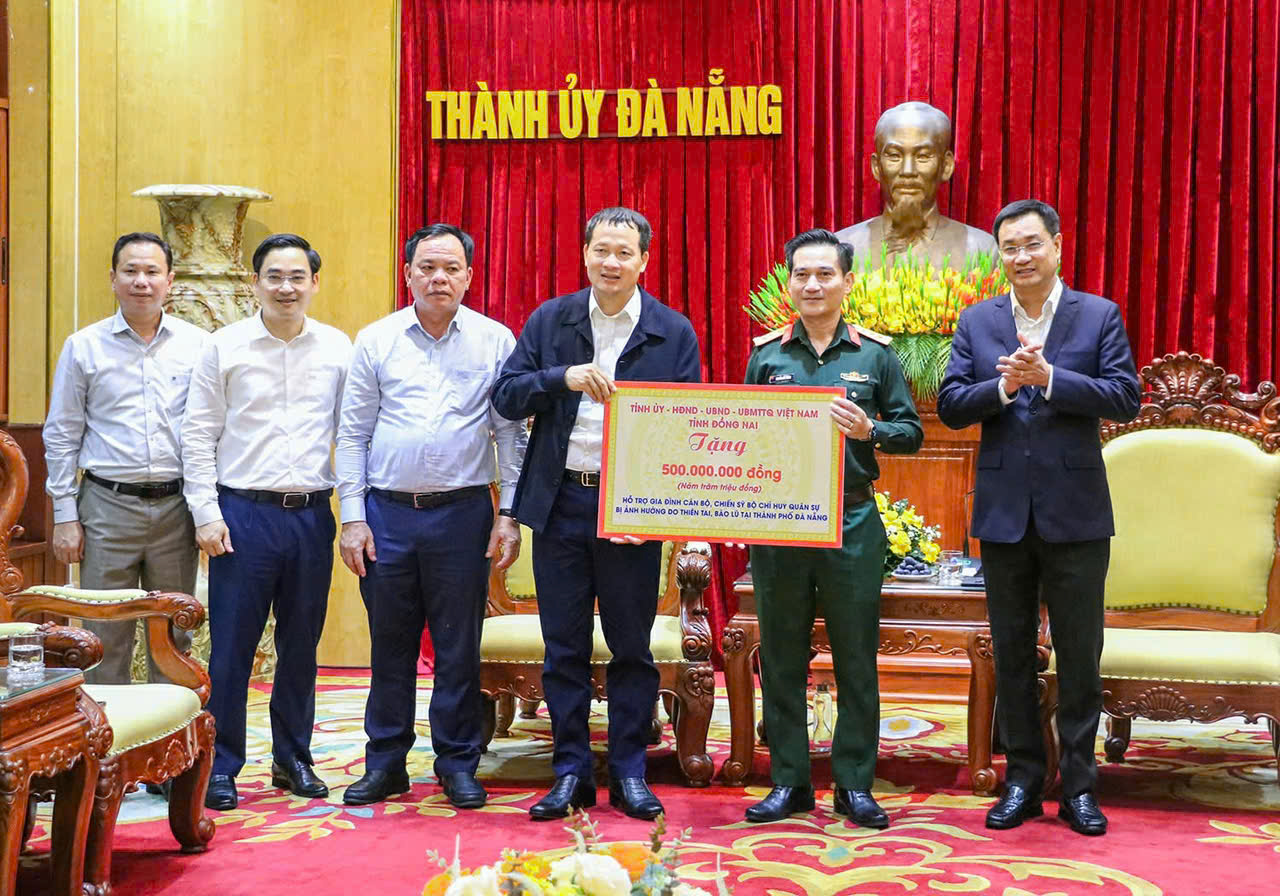 Tại thành phố Đà Nẵng hỗ trợ 06 tỷ đồng (gồm 05 tỷ đồng khắc phục thiên tai và 01 tỷ đồng hỗ trợ các gia đình cán bộ, chiến sĩ lực lượng vũ trang bị ảnh hưởng do ngập lụt).