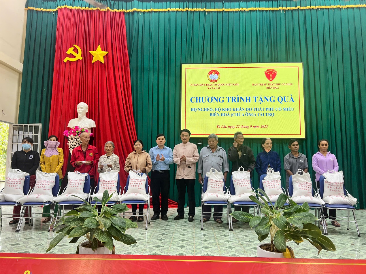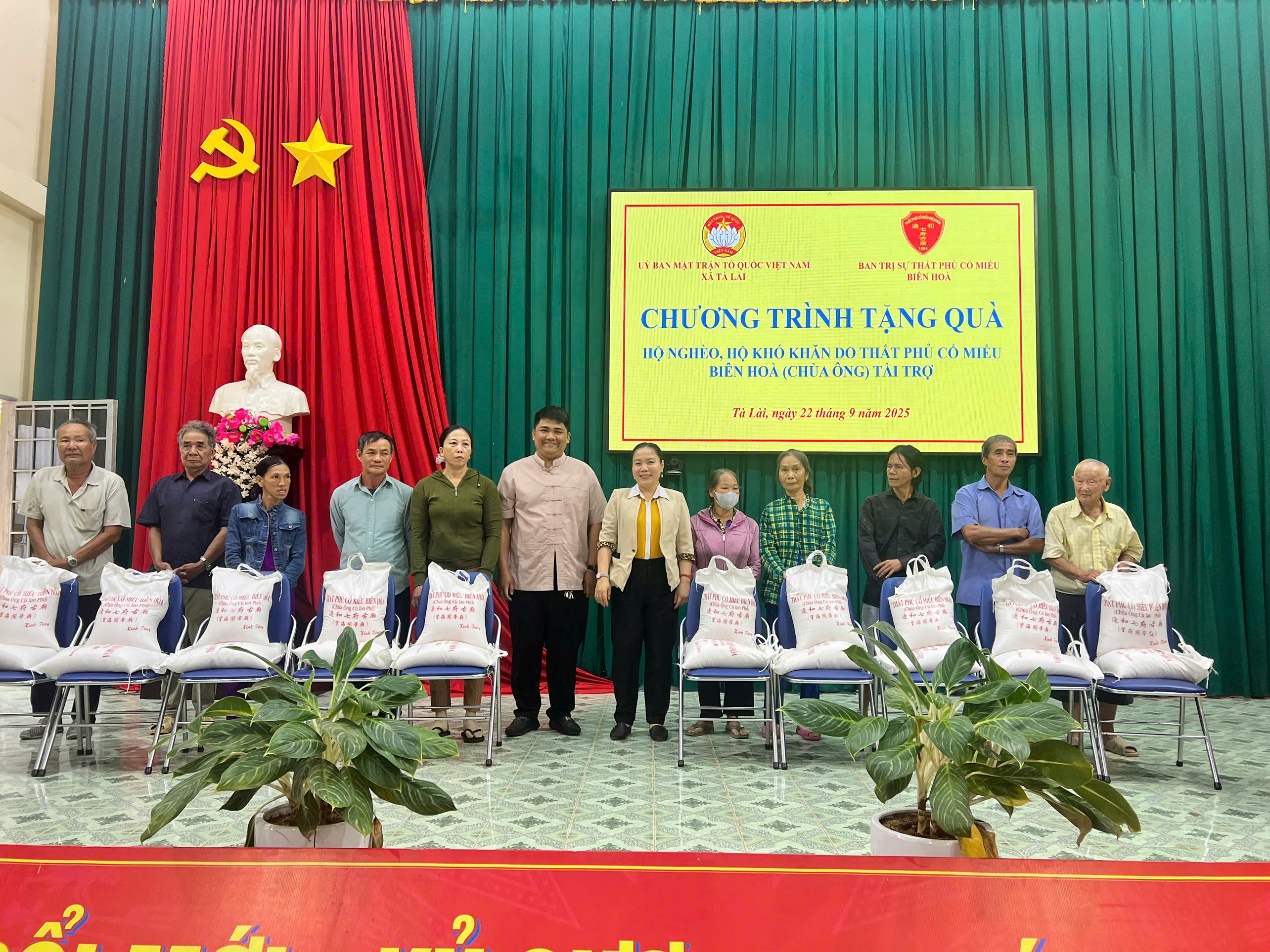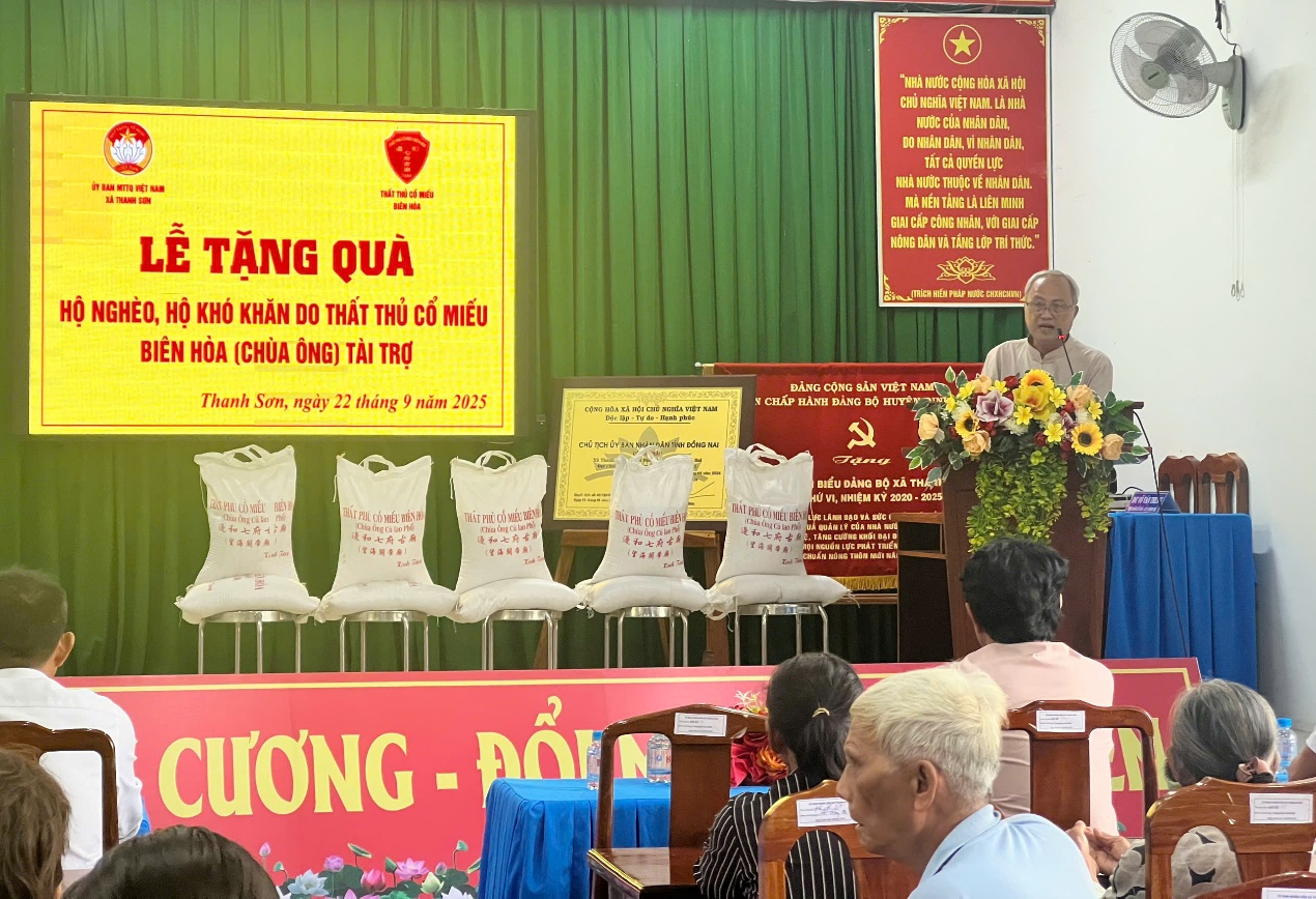 30 tấn gạo do Ban Trị sự Thất phủ Cổ Miếu (chùa Ông) ủng hộ thông qua Ủy ban MTTQ Việt Nam tỉnh và được trao tặng tại 06 xã: Thanh Sơn, Tà Lài, Nam Cát Tiên, Thọ Sơn, Đak Nhau, Bom Bo (mỗi địa phương được nhận 05 tấn gạo).