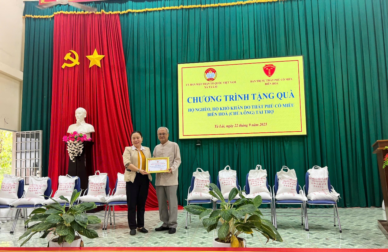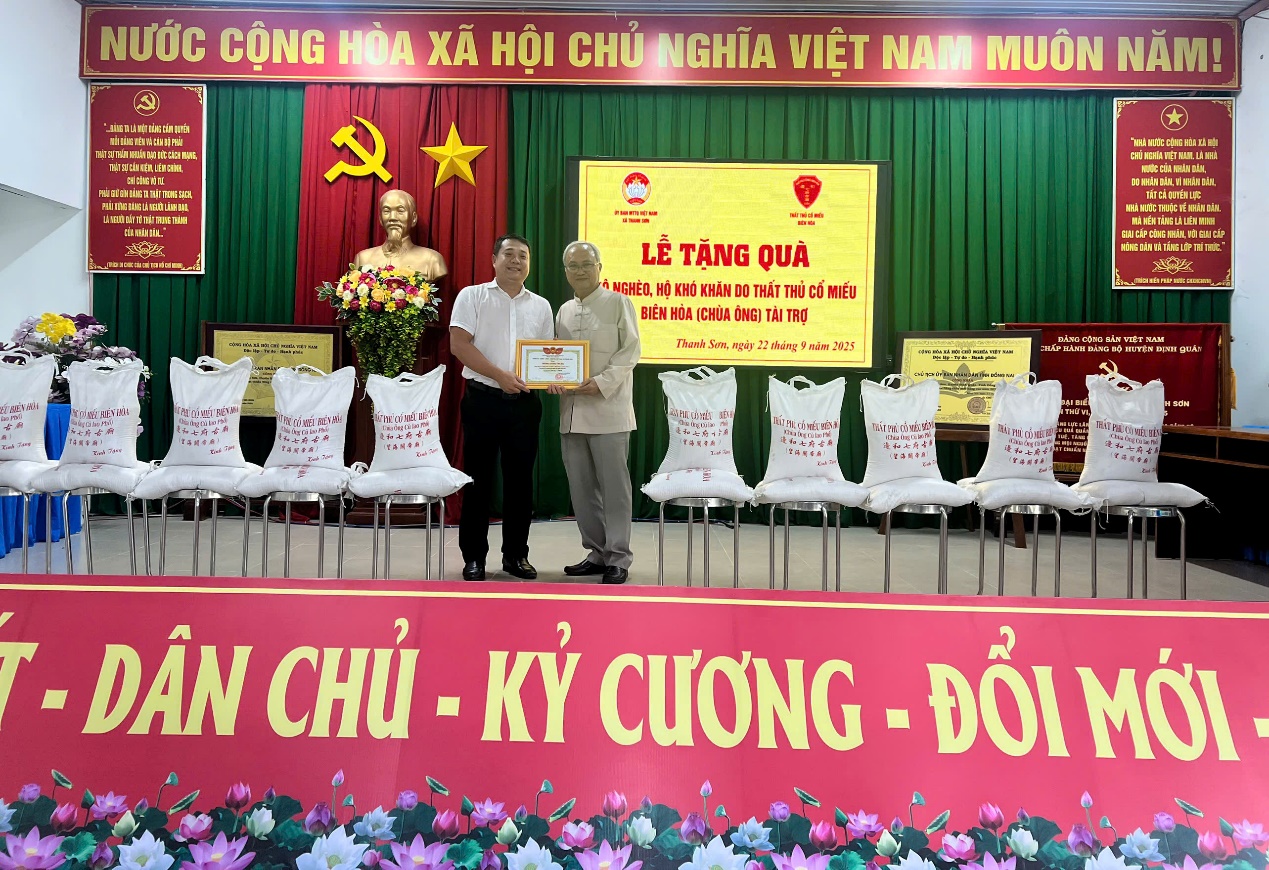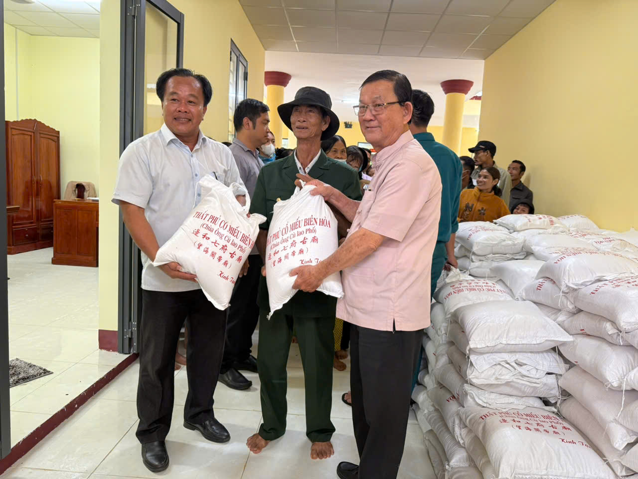 30 tấn gạo do Ban Trị sự Thất phủ Cổ Miếu (chùa Ông) ủng hộ thông qua Ủy ban MTTQ Việt Nam tỉnh và được trao tặng tại 06 xã: Thanh Sơn, Tà Lài, Nam Cát Tiên, Thọ Sơn, Đak Nhau, Bom Bo (mỗi địa phương được nhận 05 tấn gạo).