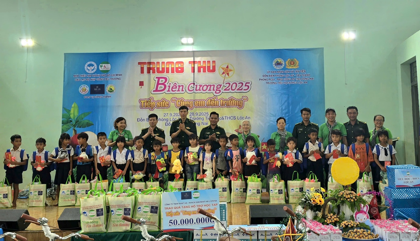 Thực hiện Chương trình công tác năm 2025 của các đơn vị, địa phương; sau một thời gian khảo sát thực tế, bàn bạc, thảo luận và đi đến thống nhất phối hợp tổ chức, Chương trình “Trung thu biên cương - Chia sẻ yêu thương - Tiếp sức cùng em đến trường năm 2025” đã diễn ra thành công tốt đẹp tại Trường Tiểu học và Trung học sơ sở (THCS) Lộc An - xã Tân Tiến, tỉnh Đồng Nai.