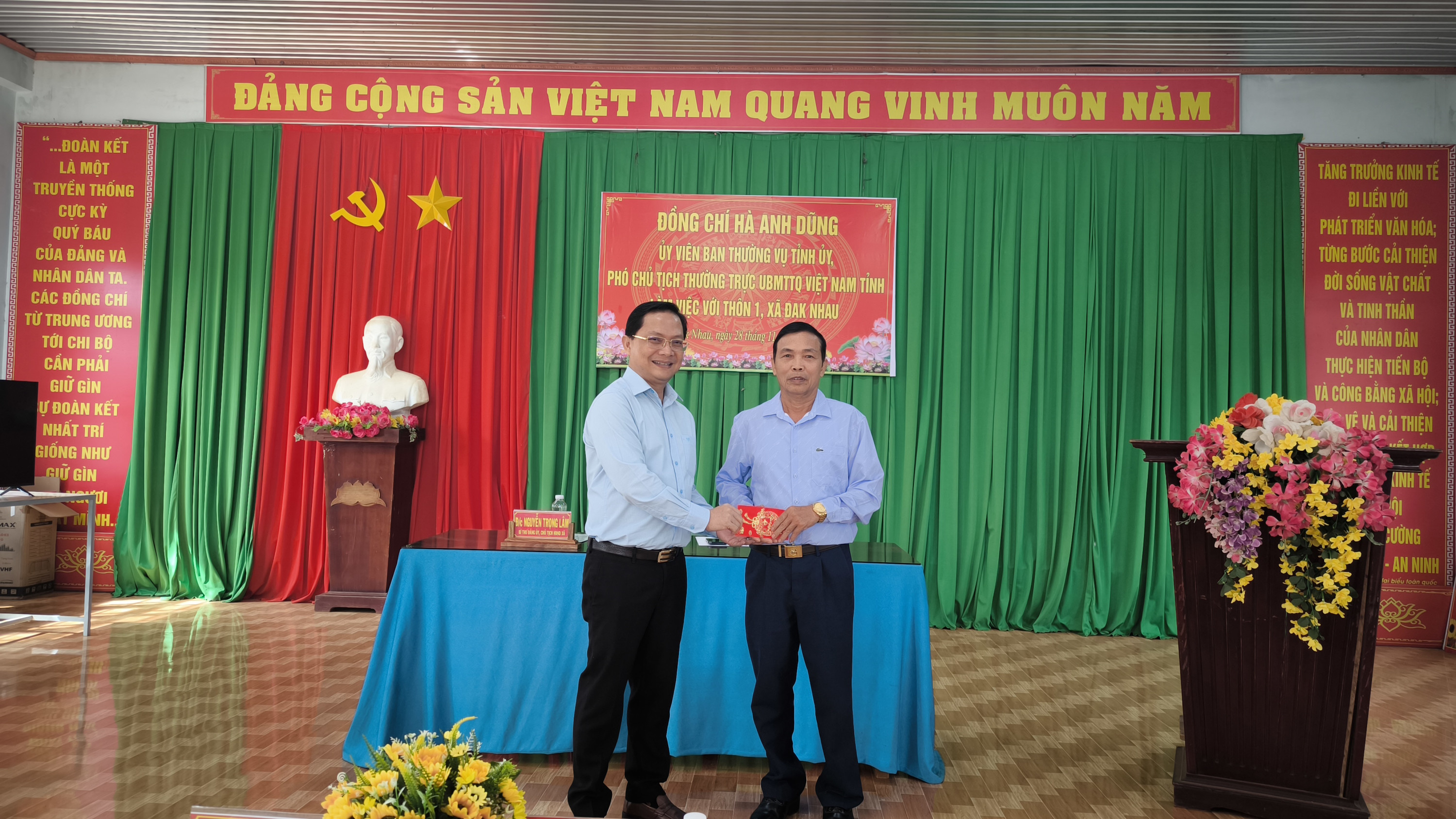 Sáng ngày 28/11, đồng chí Hà Anh Dũng - Ủy viên Ban Thường vụ Tỉnh ủy, Phó Chủ tịch Thường trực UBMTTQVN tỉnh đã trực tiếp về thăm, kiểm tra tiến độ xây dựng trụ sở làm việc và làm việc với hệ thống chính trị xã Đak Nhau. Cùng đi có các đồng chí lãnh đạo chủ chốt của xã: Đồng chí Nguyễn Trọng Lâm – Bí thư Đảng ủy, Chủ tịch HĐND xã; đồng chí Phạm Đình Phùng – Phó Bí thư Thường trực Đảng ủy; đồng chí Tô Hoài Nam – Phó Bí thư Đảng ủy, Chủ tịch UBND xã cùng với các đồng chí trong Ban Thường vụ, Ban Chấp hành Đảng uỷ xã.