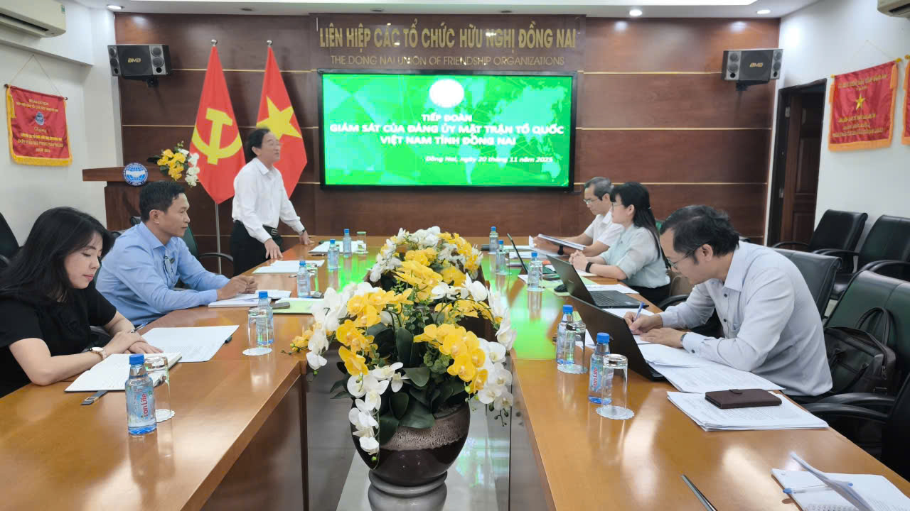 (Đồng Nai) – Thực hiện Quyết định số 18-QĐ/ĐU.MTTQ và Kế hoạch số 03-KH/ĐU.MTTQ, vừa qua, Đoàn giám sát của Đảng ủy MTTQ Việt Nam tỉnh do đồng chí Nguyễn Tất Độ - Ủy viên Ban Thường vụ, Chủ nhiệm Ủy ban Kiểm tra Đảng ủy, Phó Chủ tịch Ủy ban MTTQ Việt Nam tỉnh làm Trưởng đoàn đã tiến hành giám sát chuyên đề tại Chi bộ Hội Nông dân tỉnh và Chi bộ Liên hiệp các tổ chức hữu nghị tỉnh.