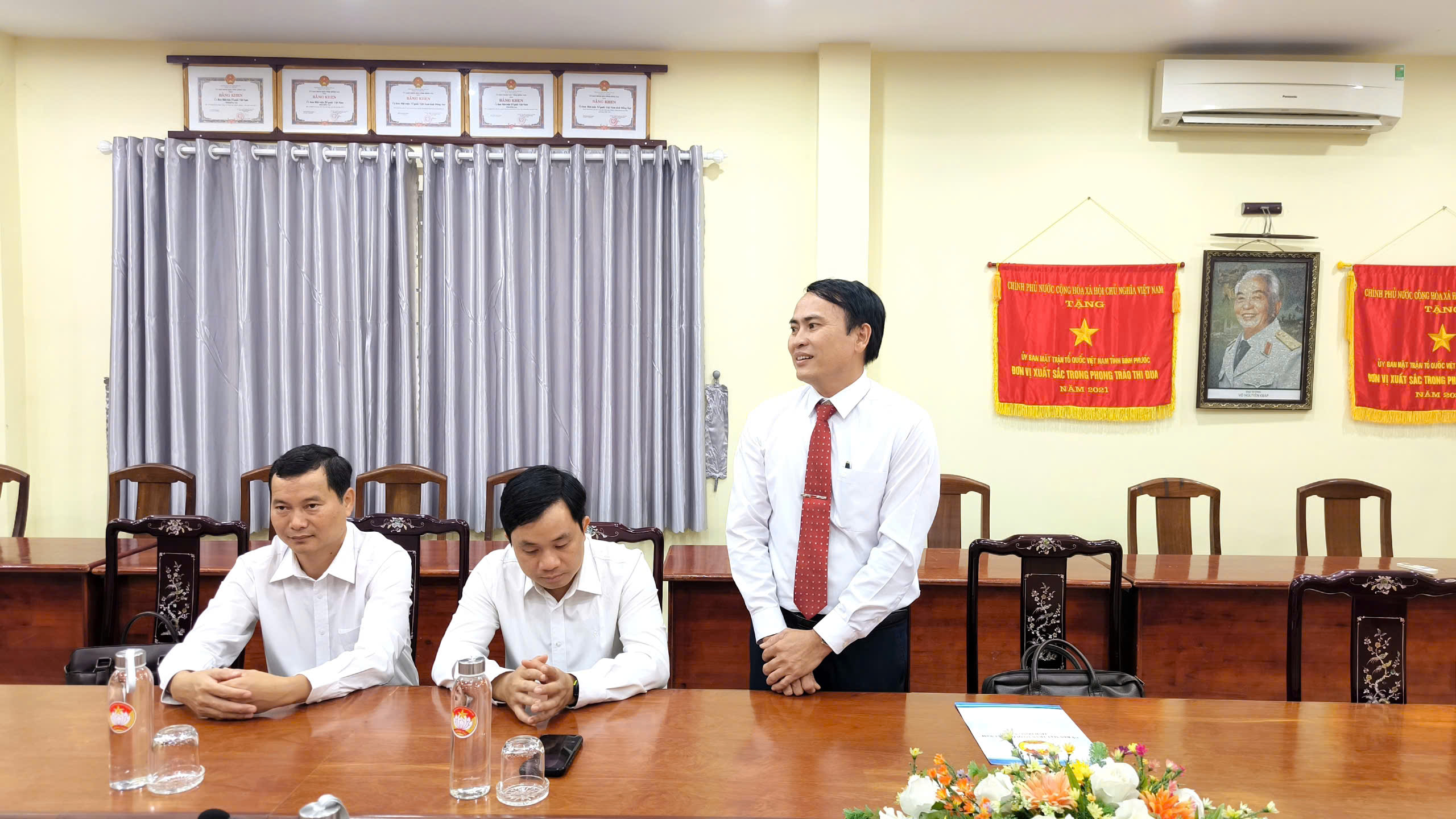 Ủy viên Ban Thường vụ Tỉnh ủy, Phó chủ tịch Thường trực UBMTTQVN tỉnh, Hà Anh Dũng cùng với các đồng chí Phó Chủ tịch UBMTTQVN tỉnh trao quyết định