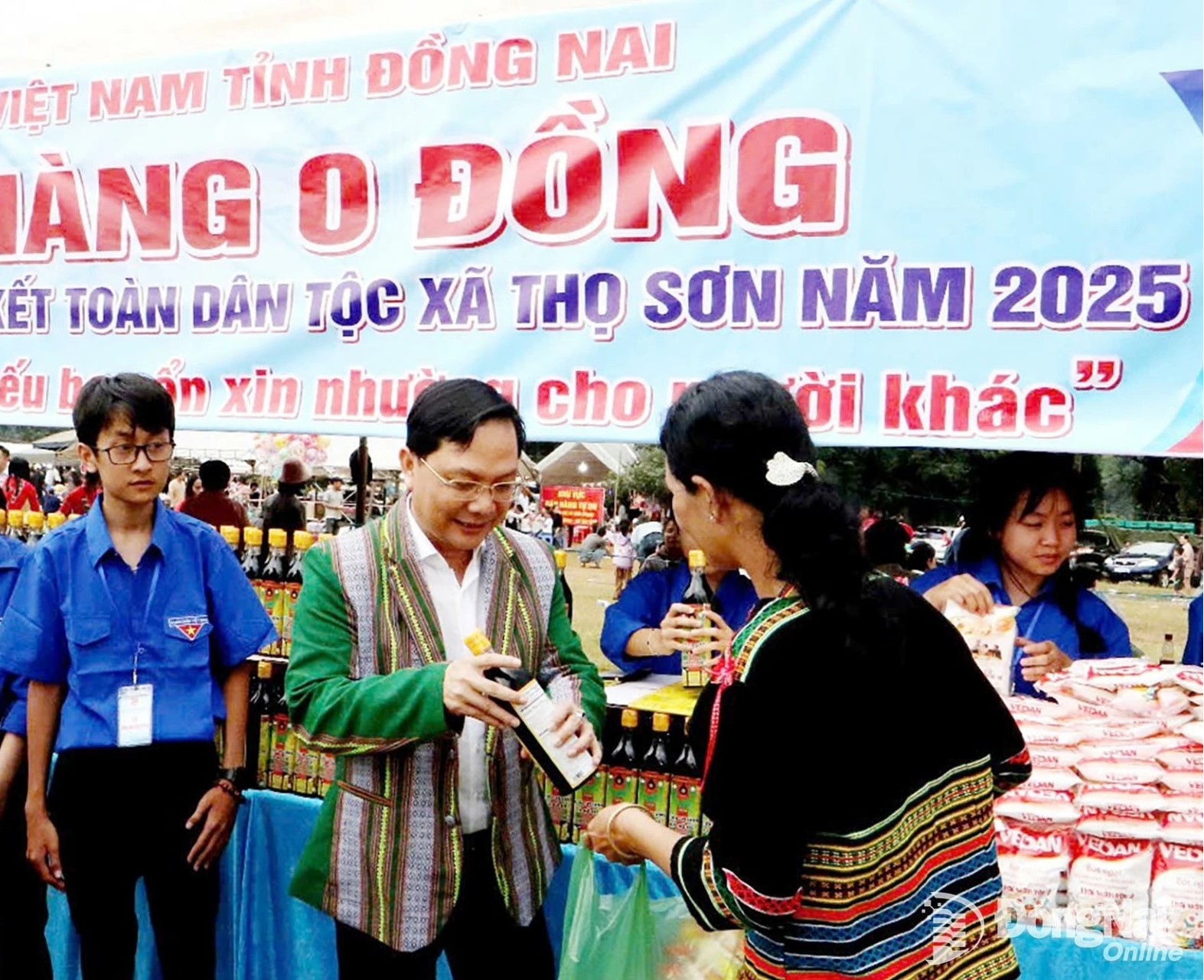 Ủy viên Ban Thường vụ Tỉnh ủy, Phó Chủ tịch Thường trực Ủy ban MTTQ Việt Nam tỉnh Đồng Nai Ông Hà Anh Dũng phát quà tại gian hàng 0 đồng của Ủy ban MTTQVN tỉnh vận động tặng cho người dân