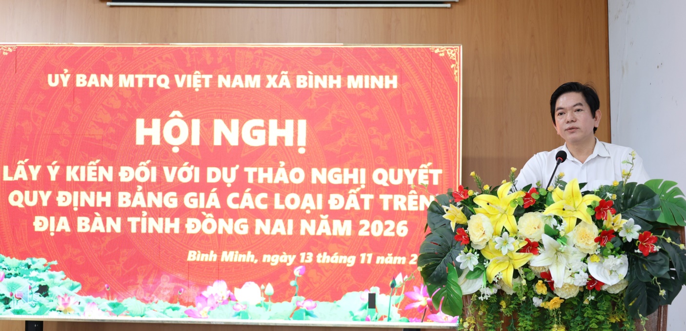 XÃ BÌNH MINH TỔ CHỨC HỘI NGHỊ LẤY Ý KIẾN GÓP Ý DỰ THẢO NGHỊ QUYẾT QUY ĐỊNH BẢNG GIÁ CÁC LOẠI ĐẤT TRÊN ĐỊA BÀN TỈNH ĐỒNG NAI NĂM 2026